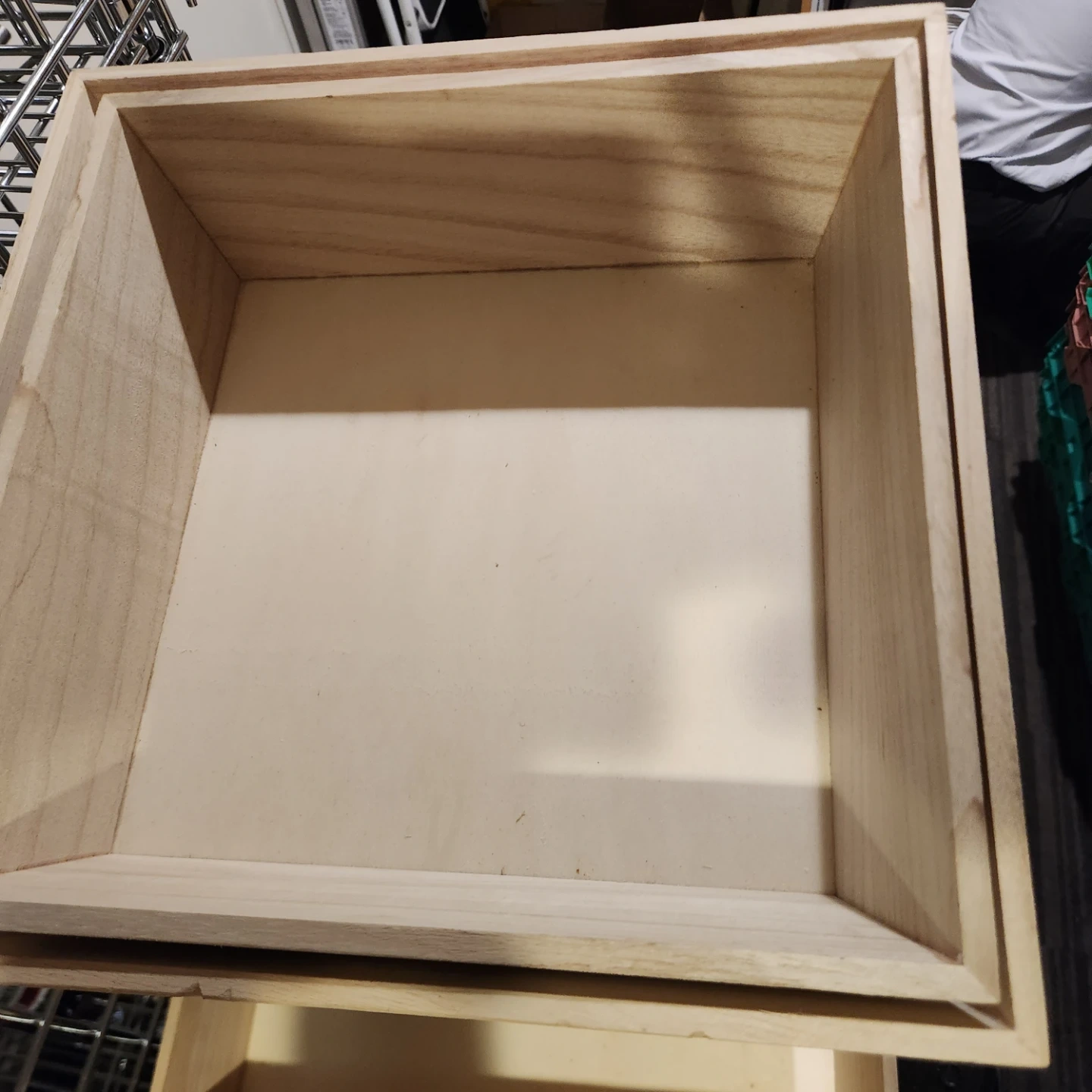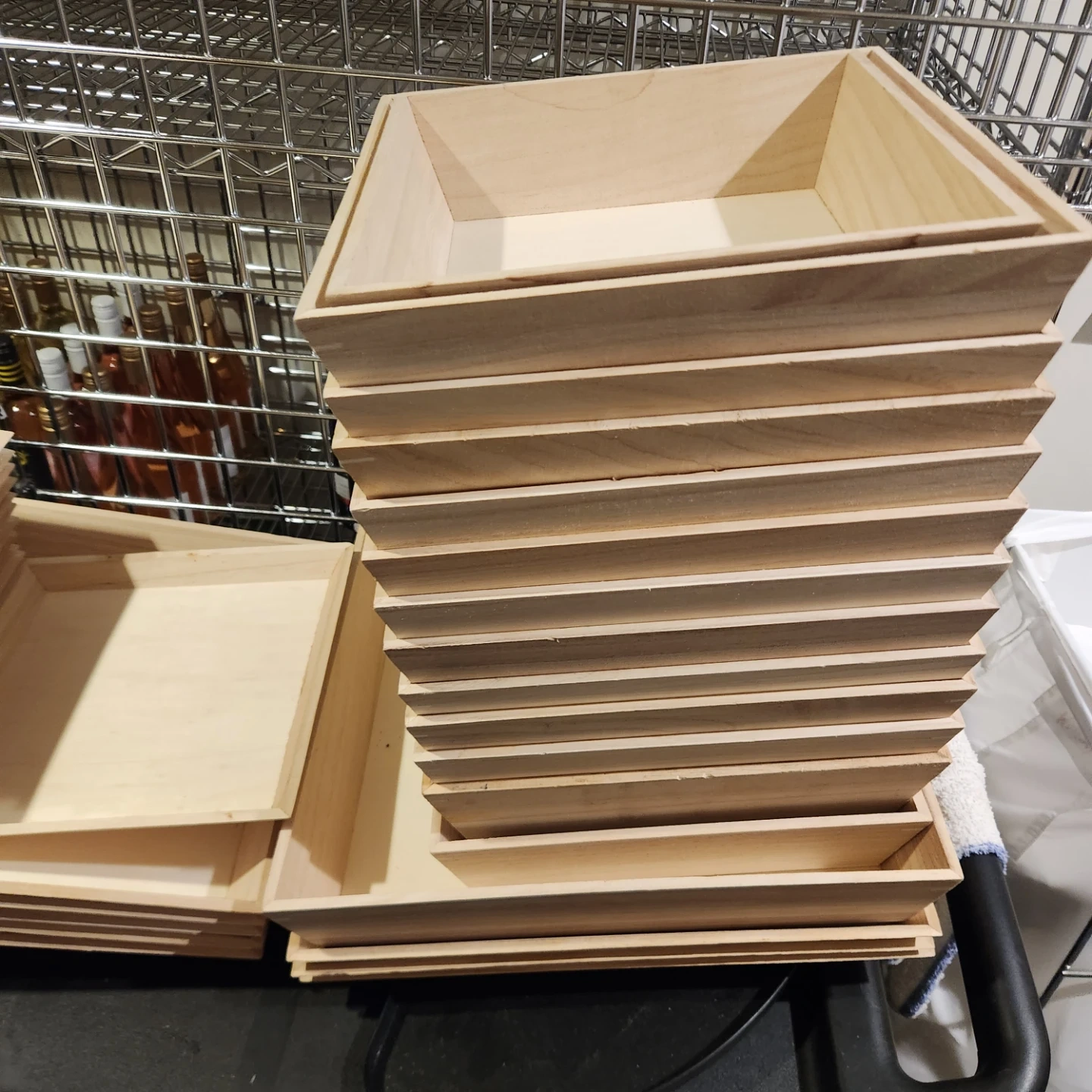 Set of wooden storage boxes. Great for organizing crafts or small items. Made in China, they are light-coloured wood. We have plenty to give away for free.