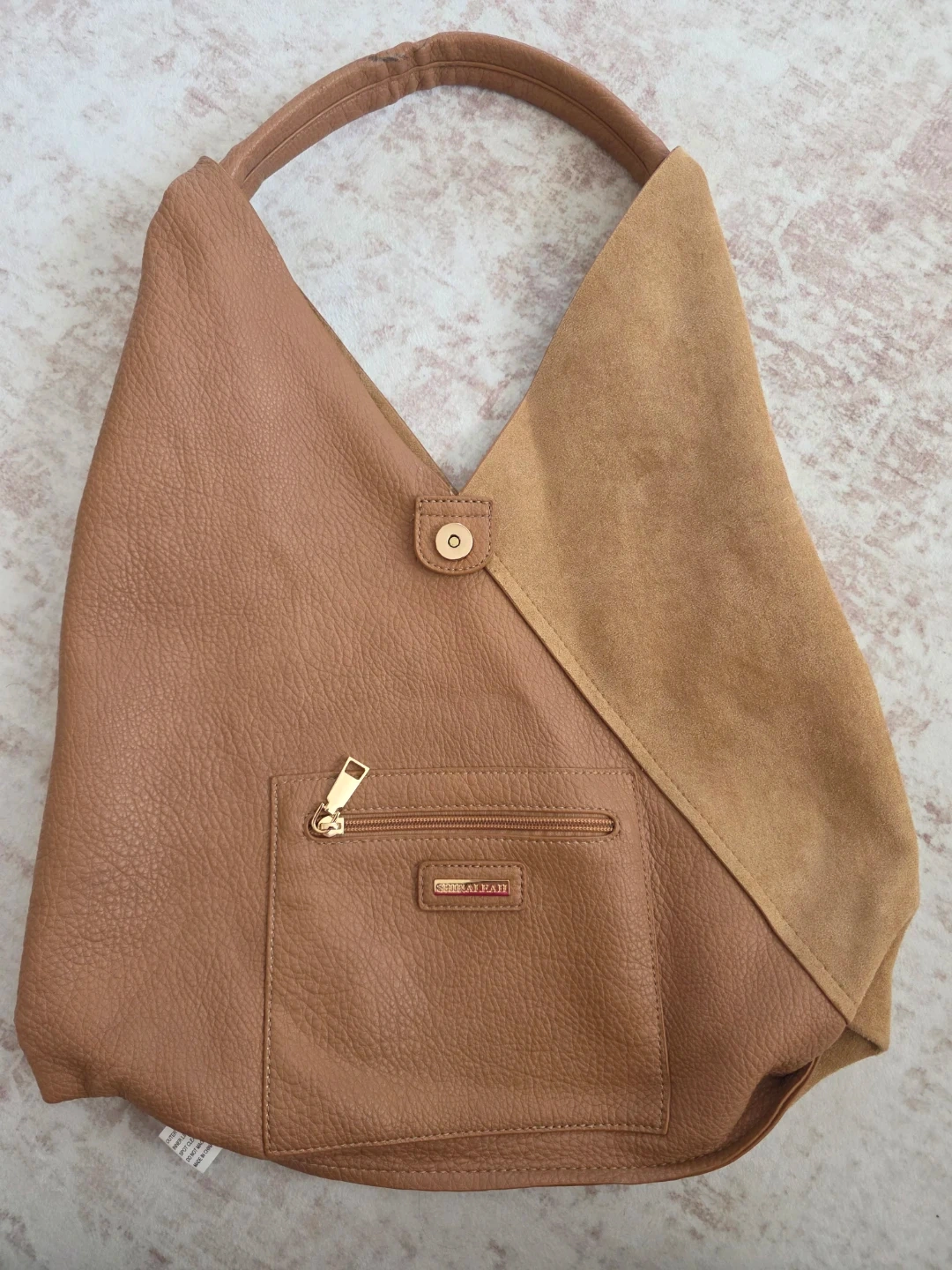 Shira Leah Hobo Bag - Tan Faux Leather Suede Combo