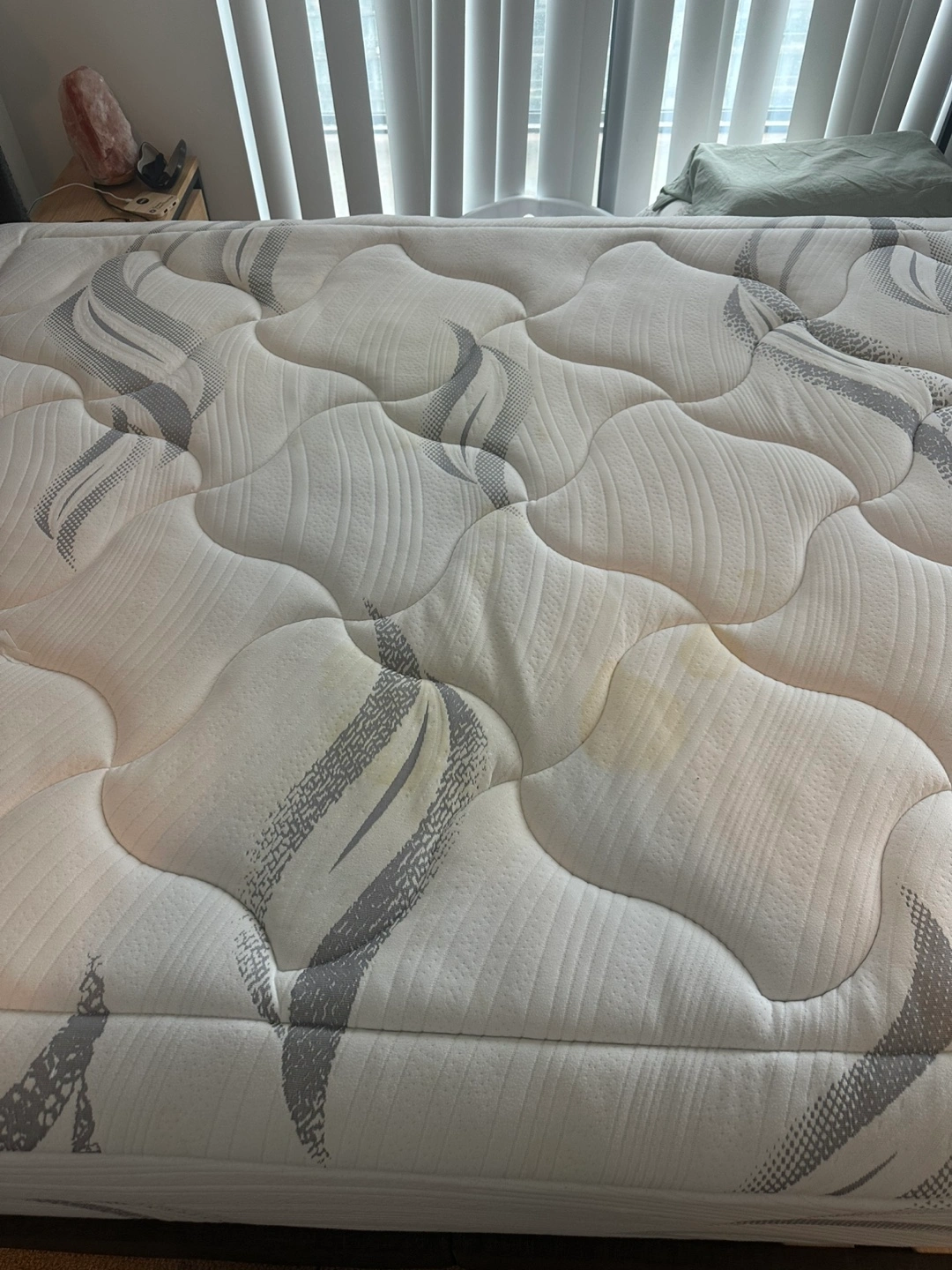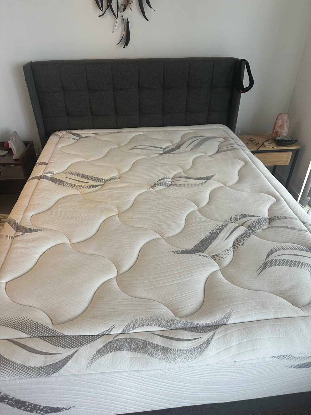 Queen size mattress for sale. Minor stains visible. Comfortable and supportive. Used but in great condition. Bought for $500 on amazon