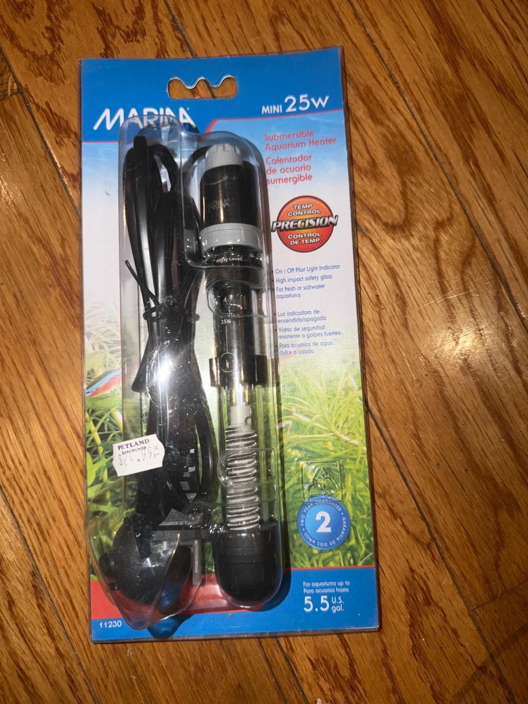 This is a Marina Mini 25W submersible aquarium heater. It's made with high impact safety glass and has an on/off pilot light indicator. Suitable for fresh or saltwater aquariums up to 5.5 gallons.