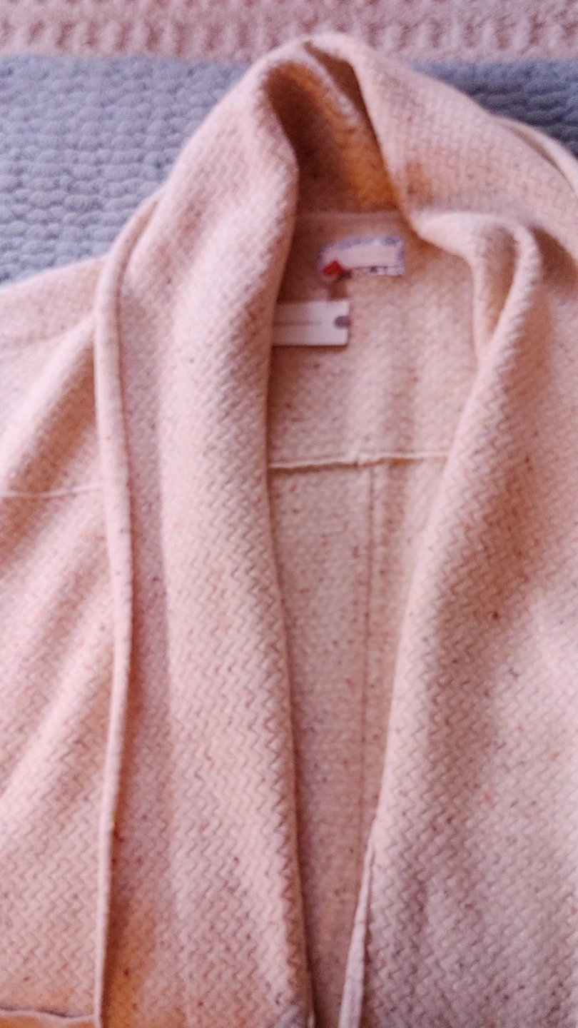 Womans Beige Anthroplogie knit cardigan. Mint condition tags still attached. Has 2 front hand pockets and zip up sides. Tag says xs but fits more like a large. Smoke free home pick up Mt Mt.Brydges cash only.