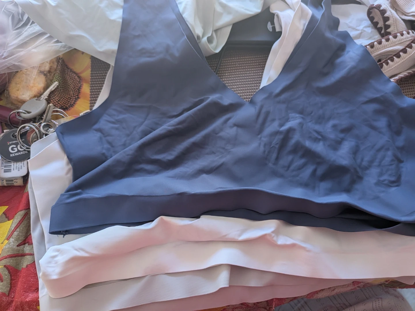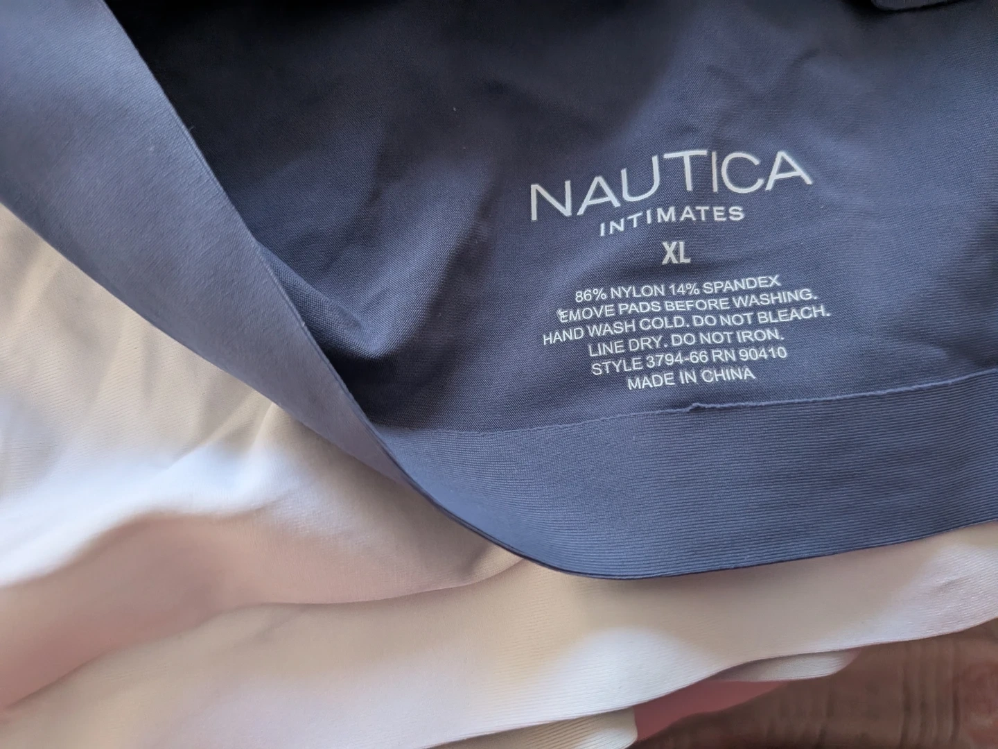 These are 3 wireless bras from Nautica Intimates in a size XL. It's made of 86% nylon and 14% spandex. Hand wash cold, do not bleach, line dry, and do not iron.