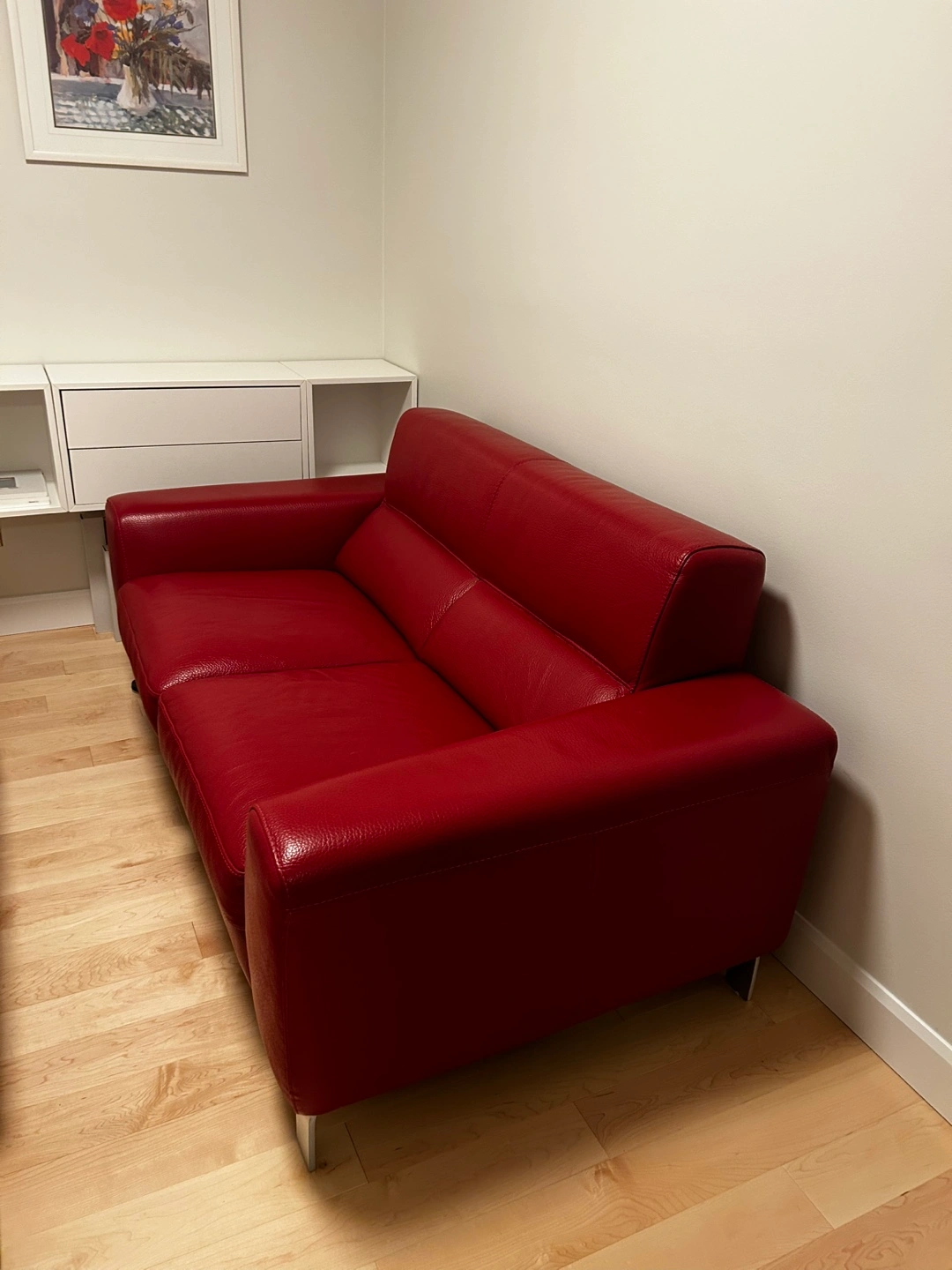 Selling our Mobilia leather 2-seater sofa, only 3 years old, due to home renovations.
