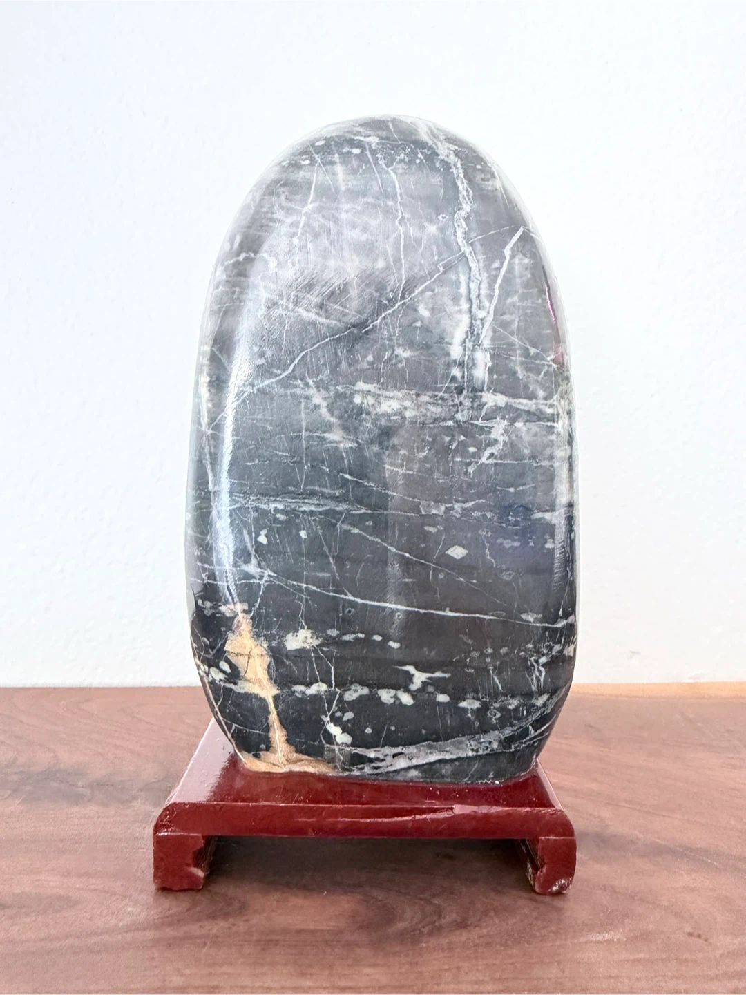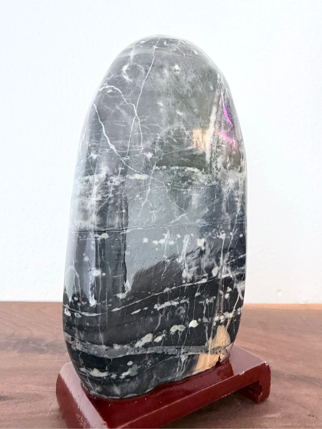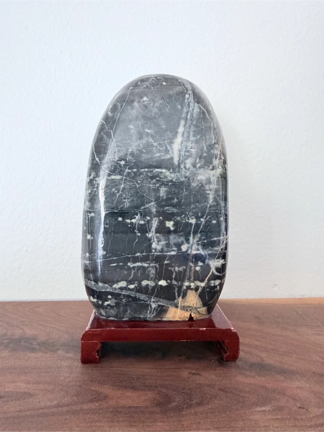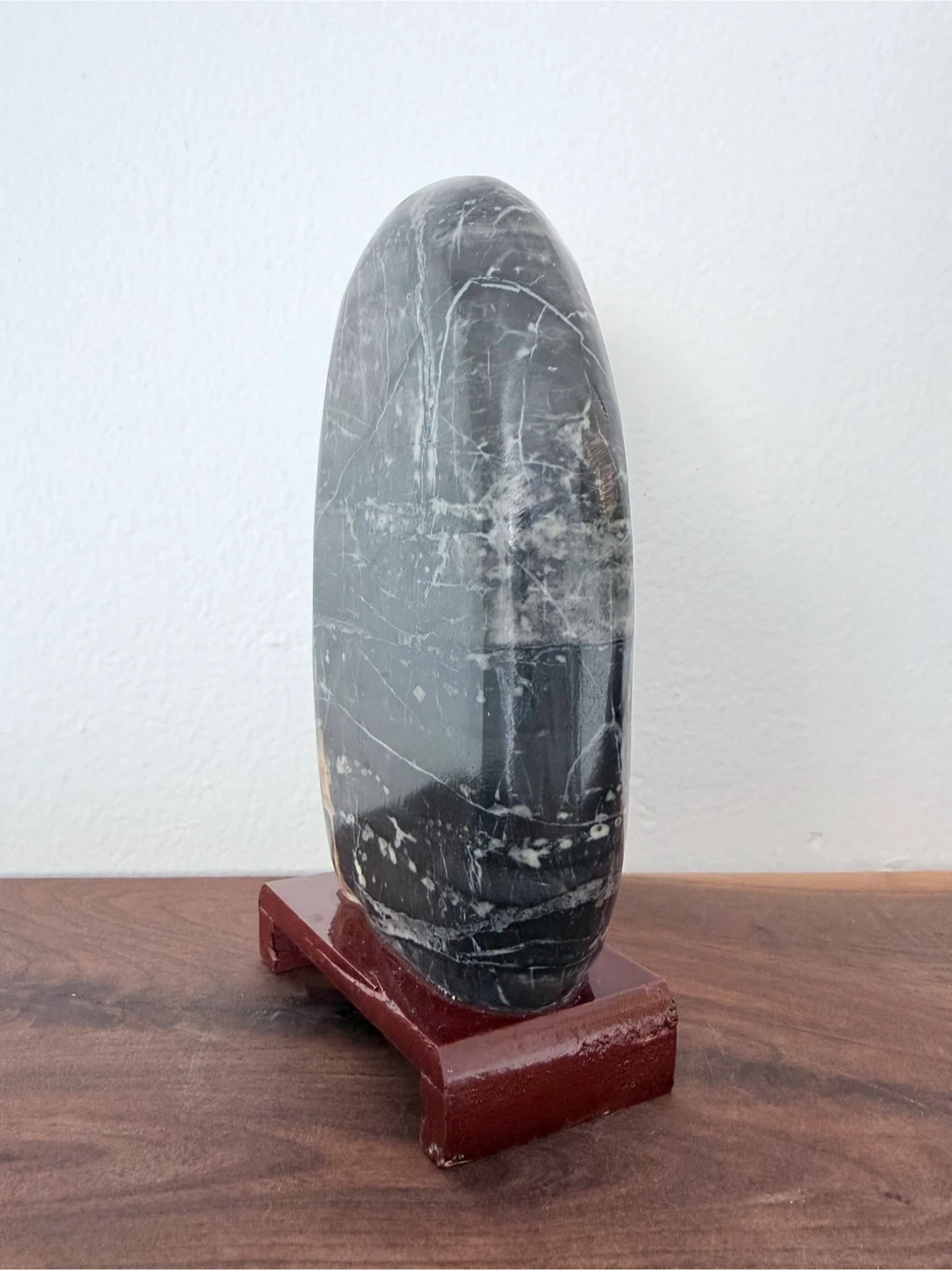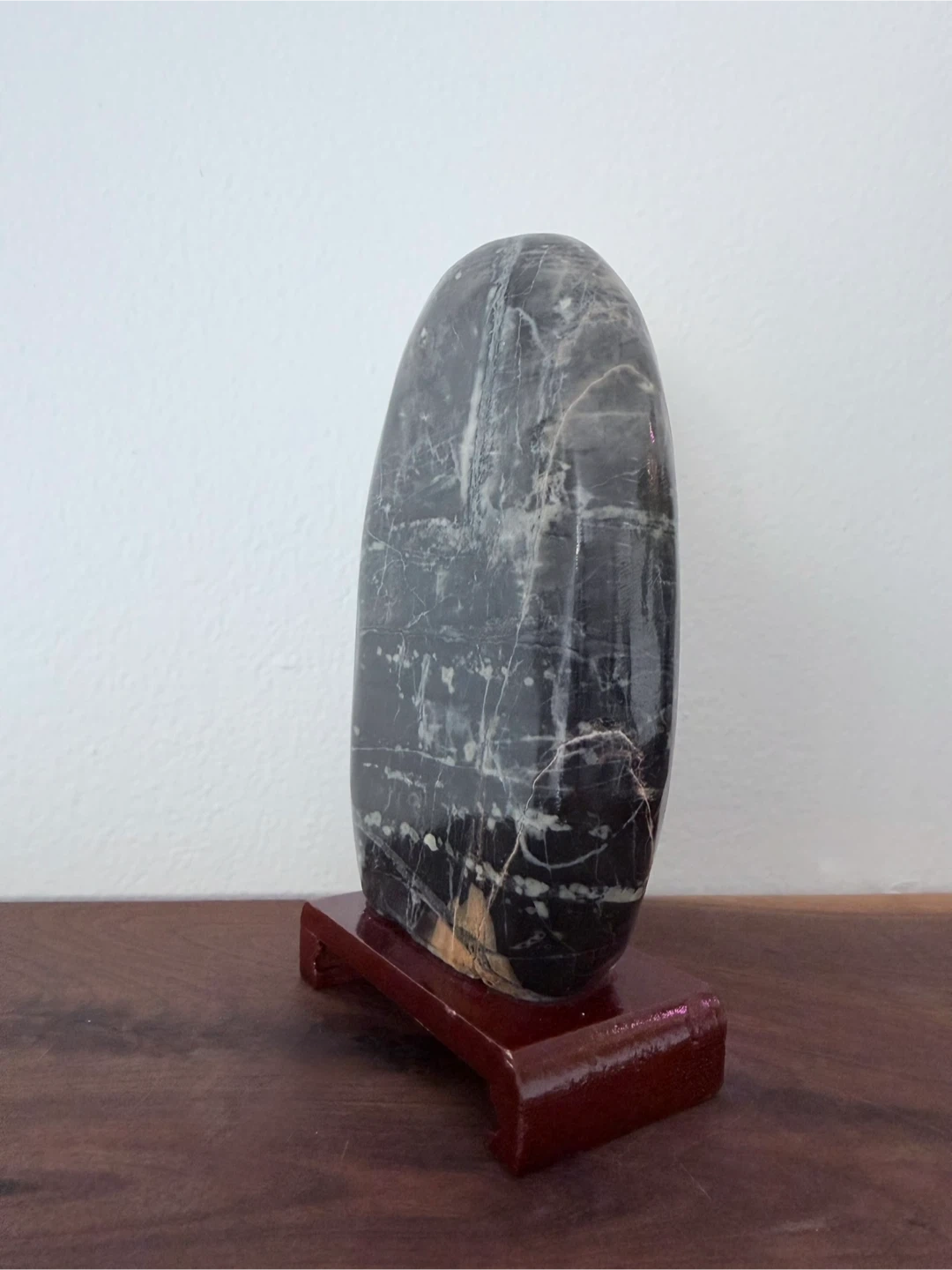 ✨The stone comes with a dark red wooden stand, ready to be displayed as a focal point in any room.