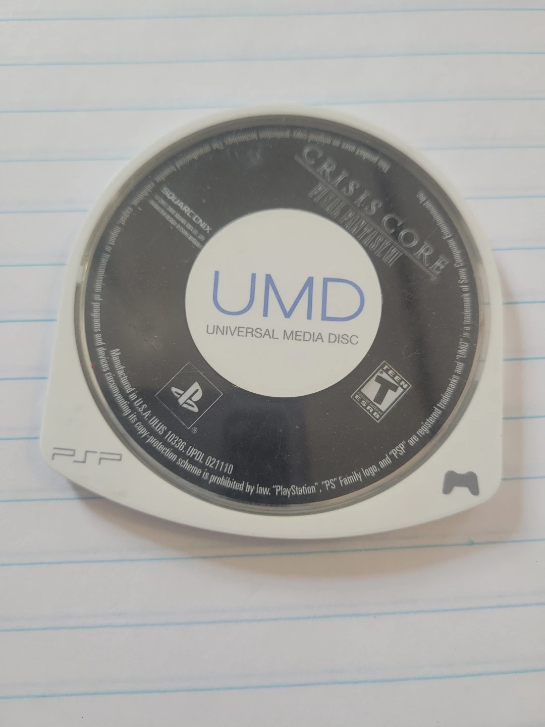 This is the UMD disc for Crisis Core: Final Fantasy VII. It's a Universal Media Disc for the PSP system. Disc and case included.