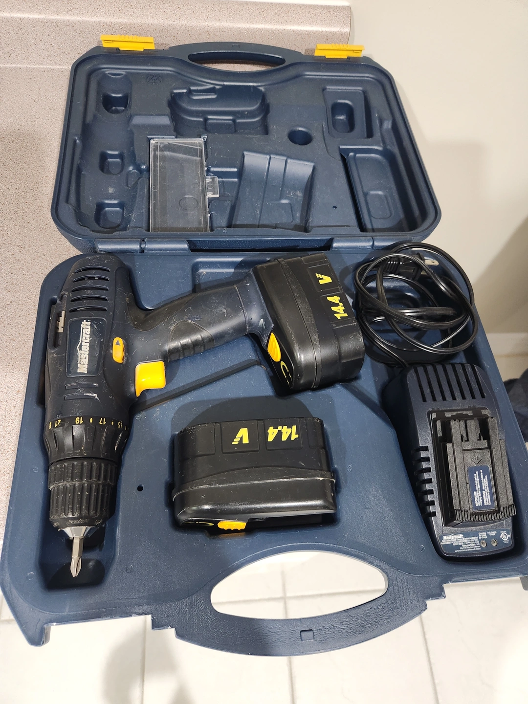 Selling a Mastercraft 14.4V cordless drill. It comes with its original case, battery, and charger. Great for various home projects!