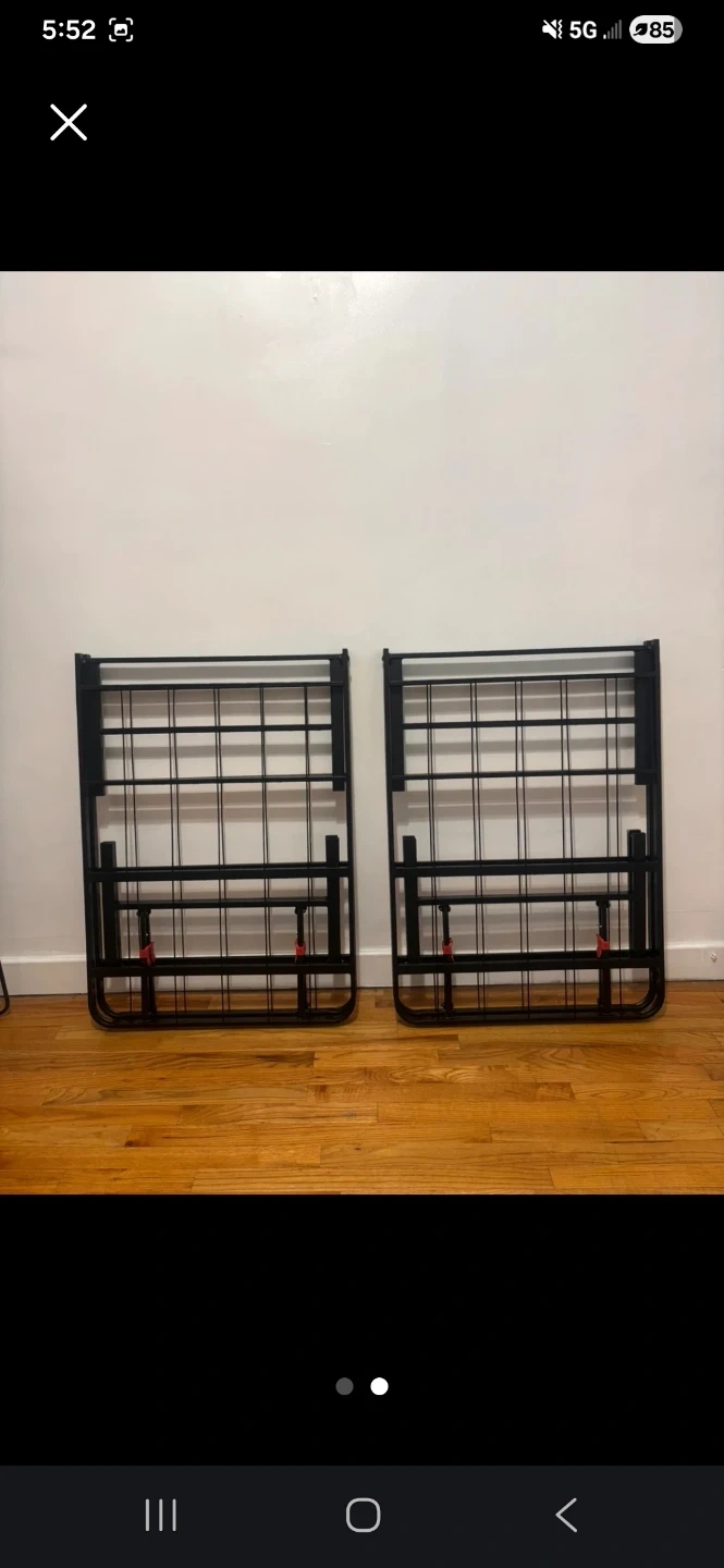 1 black metal folding bed frames. These are sturdy and easy to set up. Great for guest rooms or temporary sleeping arrangements!
