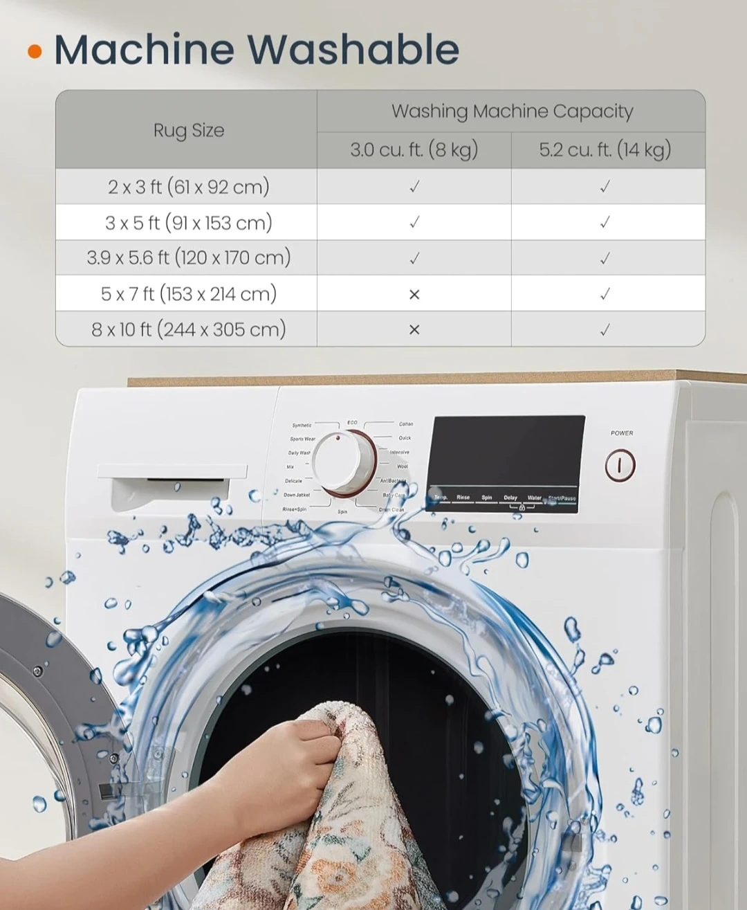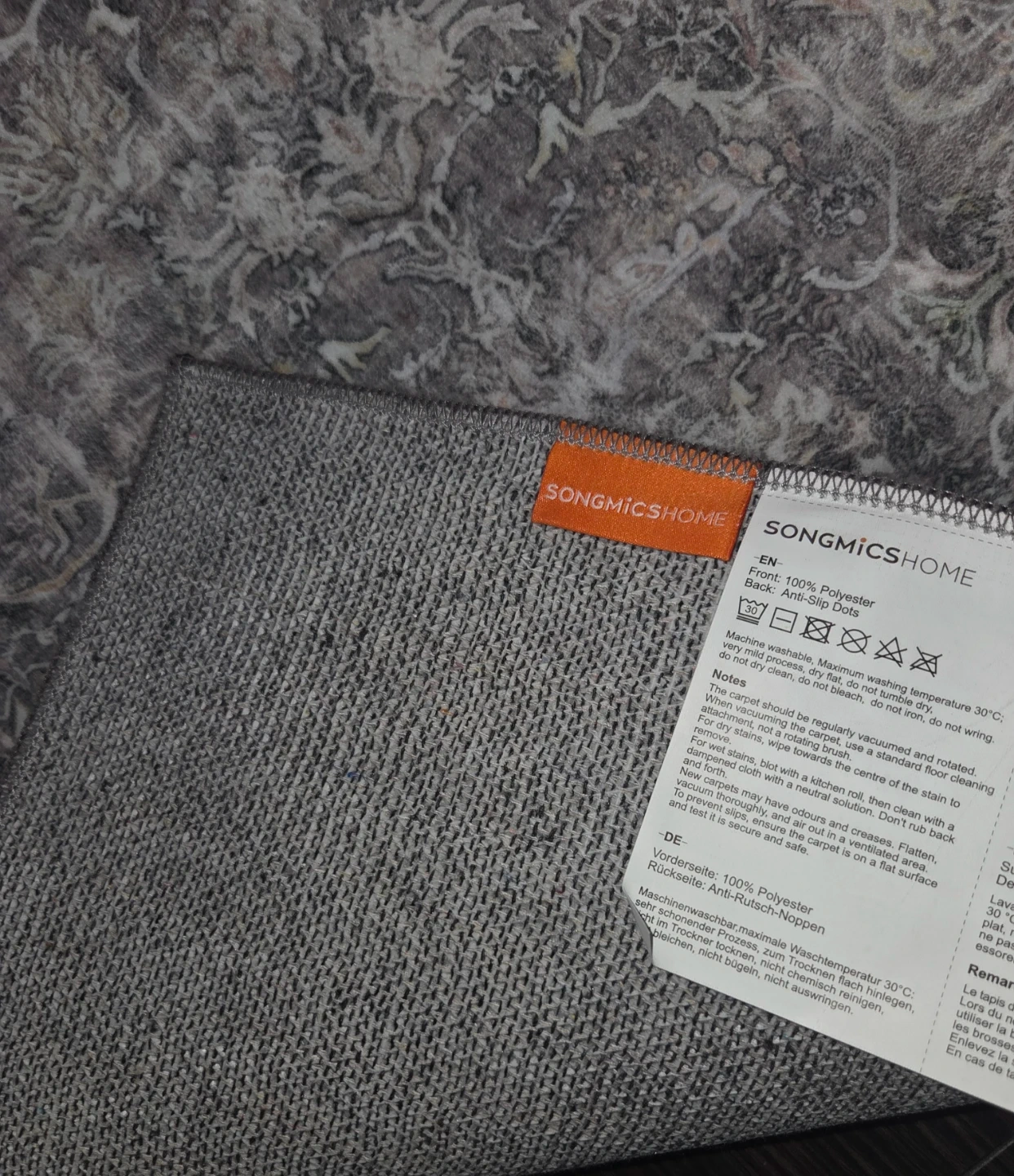 Selling a SONGMICS HOME area rug! It's 3 x 5 ft (91 x 153 cm) and made of 100% polyester. It's also machine washable for easy cleaning! The rug has an anti-slip bottom too