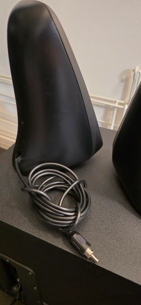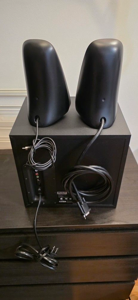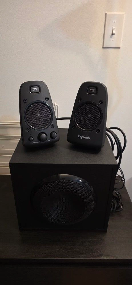 Enjoy bold sound when you listen to music, watch movies or play games with this 3-piece Logitech Z623 speaker system. It features 2 satellite speakers with 2.5" front-firing, sealed drivers and a 7" bass-reflex subwoofer for rich, full-bodied bass. With 330W total system power, it provides quality sound for games, music, and videos. Compatible with computers, music players, TVs, DVD players, gaming consoles, and other audio sources with 3.5mm or RCA audio output. Integrated controls let you dial the volume and bass up or down to customize your listening experience. THX certified for high-quality audio. Includes 2 satellite speakers, 1 subwoofer, 3.5mm audio cable, speaker cables, and a Bluetooth audio adapter for streaming. Connectivity: Wired, Bluetooth/Wireless. Model: Z623 2.1. Brand: Logitech. Feel free to message if you have any questions!