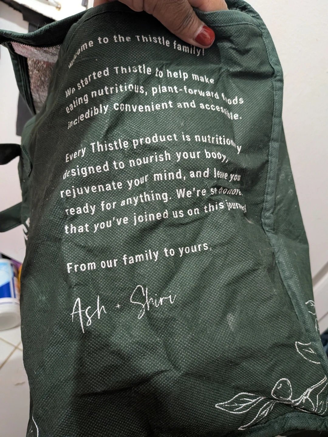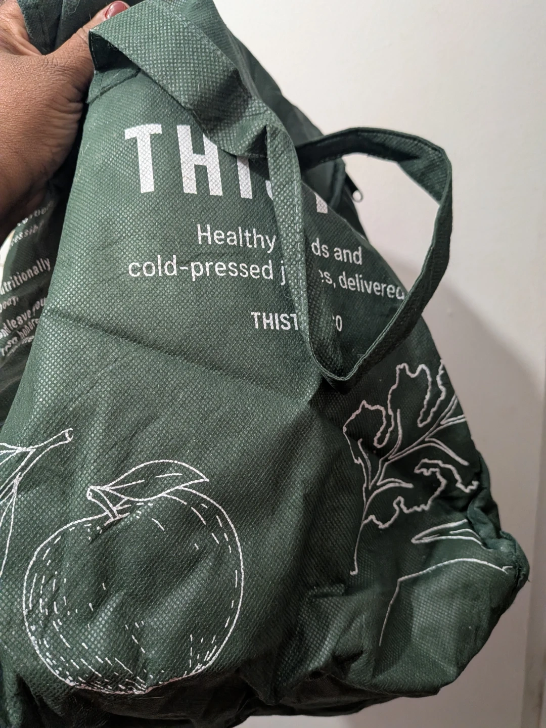 This is a Thistle insulated tote bag. It's designed to help make eating nutritious, plant-forward foods incredibly convenient and accessible. It's perfect for keeping your cold-pressed juices and foods delivered fresh!"πŸ†"