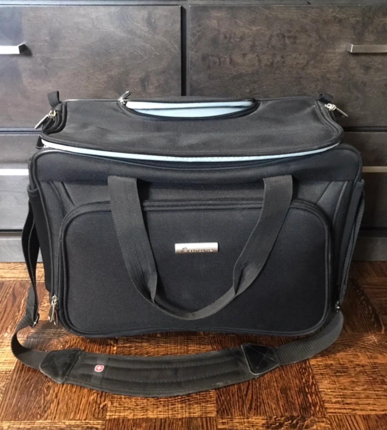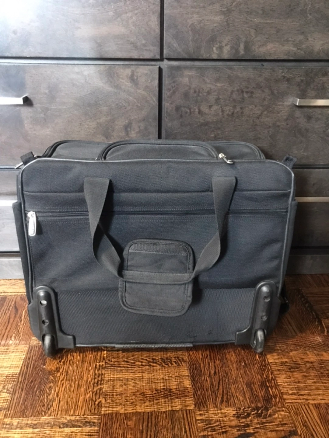 Has front zipper compartment