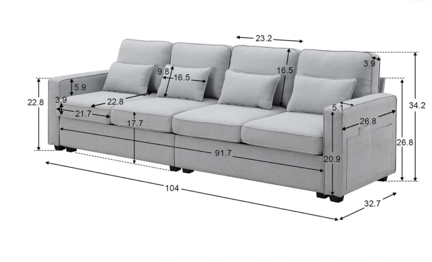 - Dimensions26.8 W X 34.2 H X 104 L