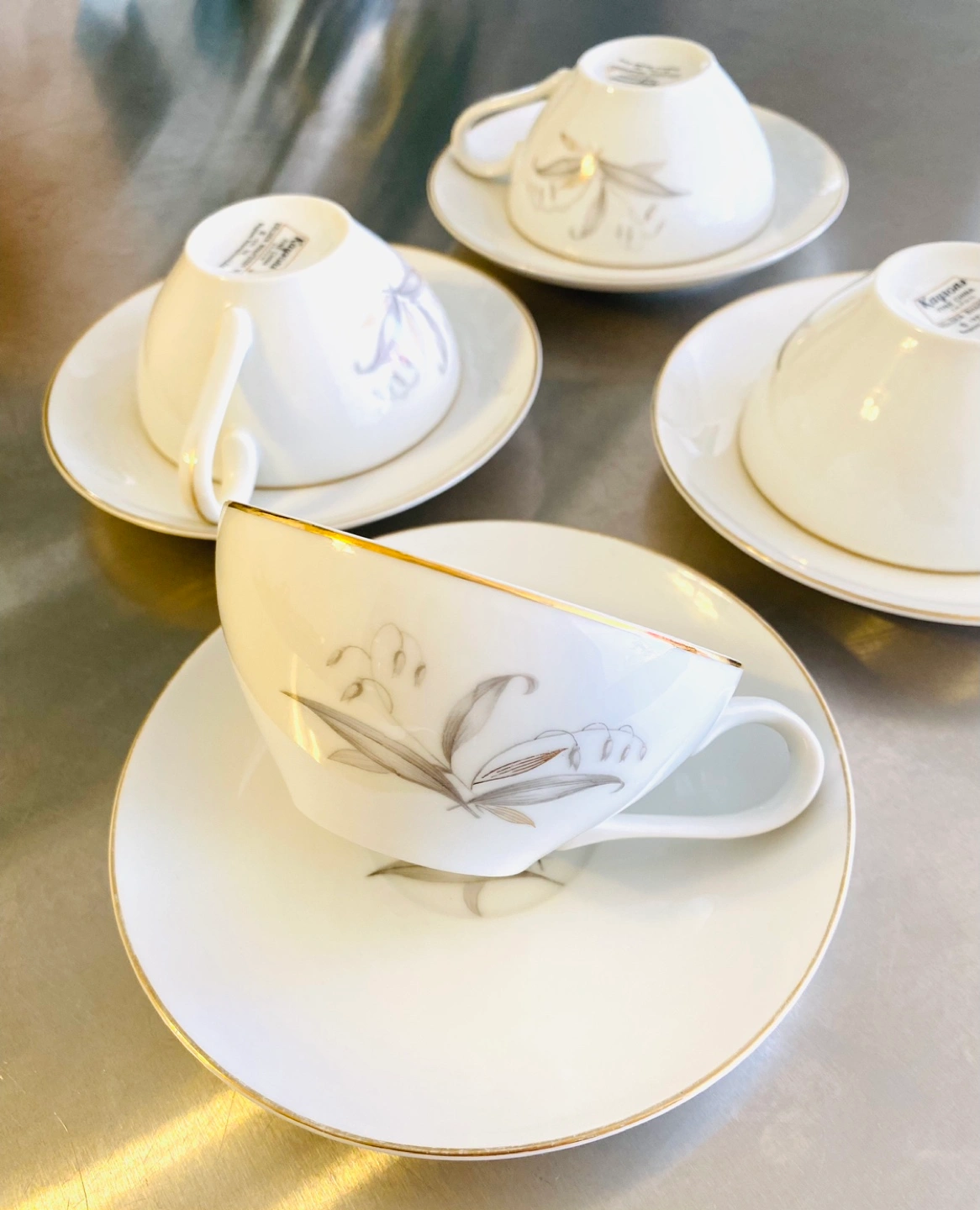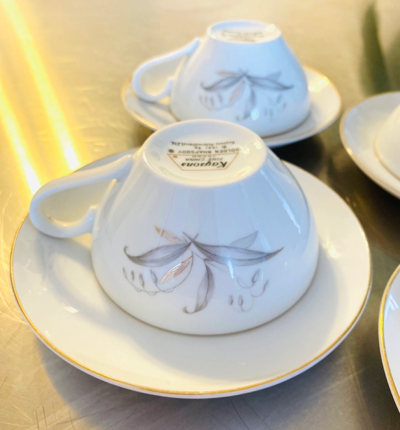 Vintage Japanese tea cup and saucer set, by Kaysons fine china, Golden Rhapsody 1961. Excellent condition! 4 sets for 45$!🥰