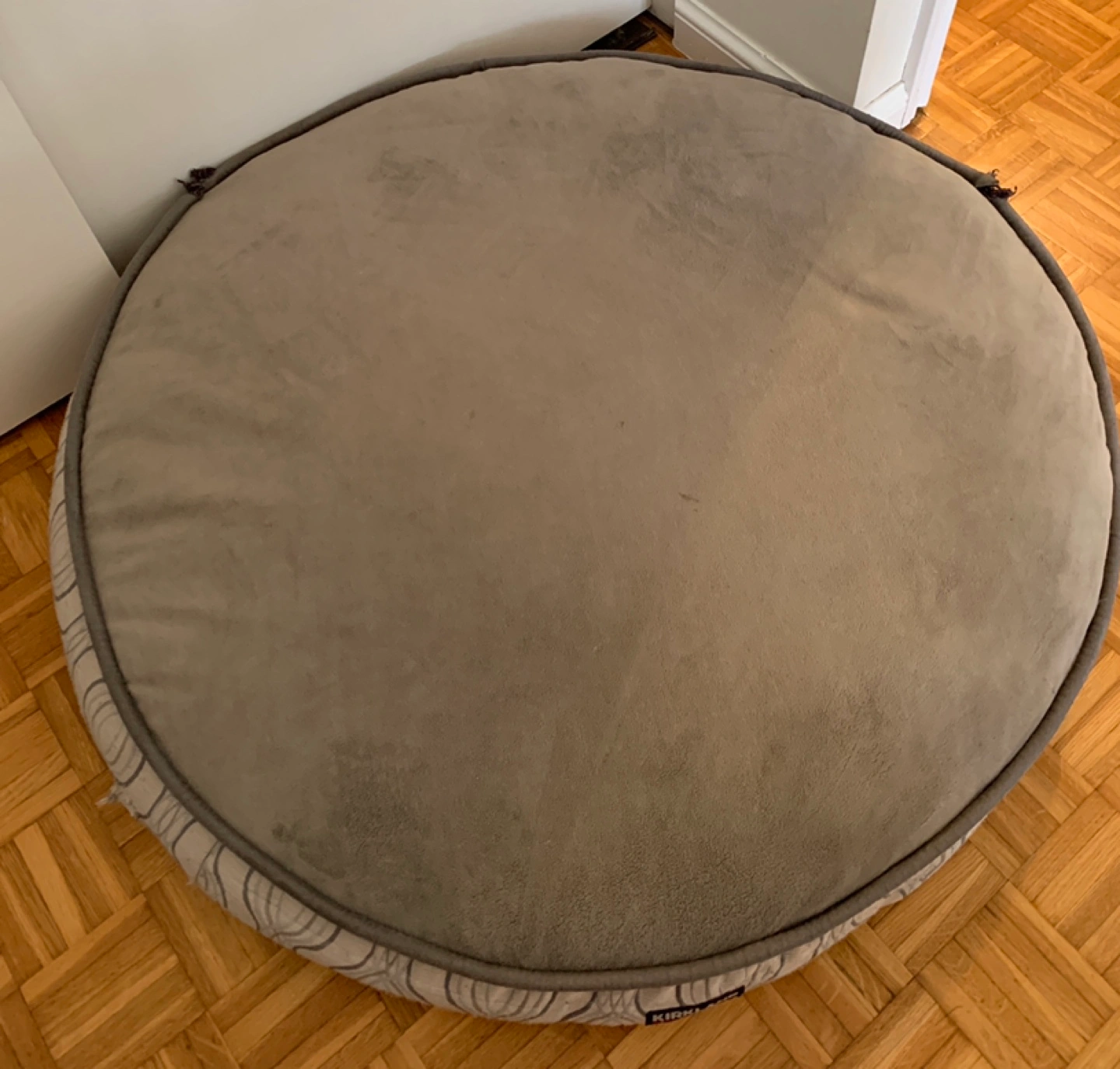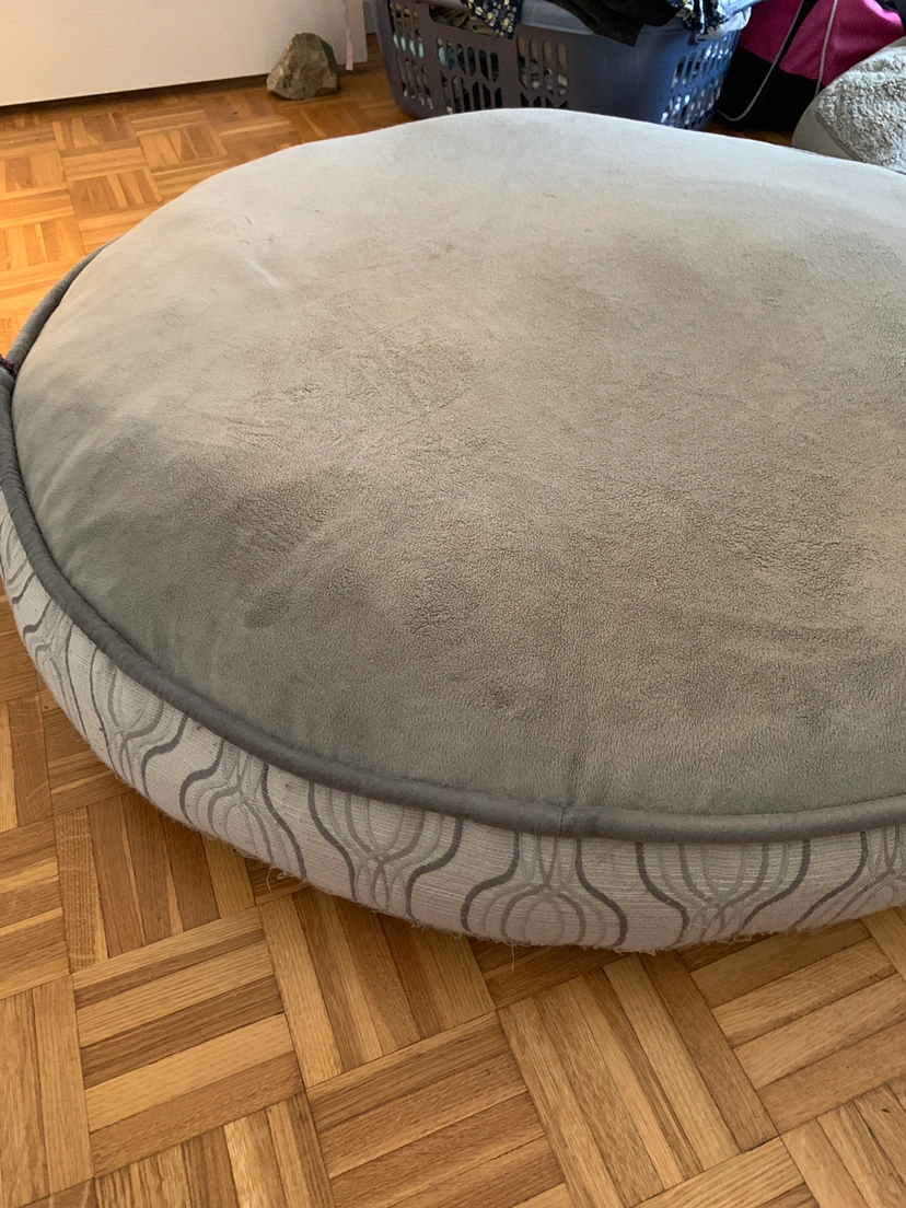 41” Round dog beg good condition one area as shown where my dog would pull it across room. Removable cover - washable.