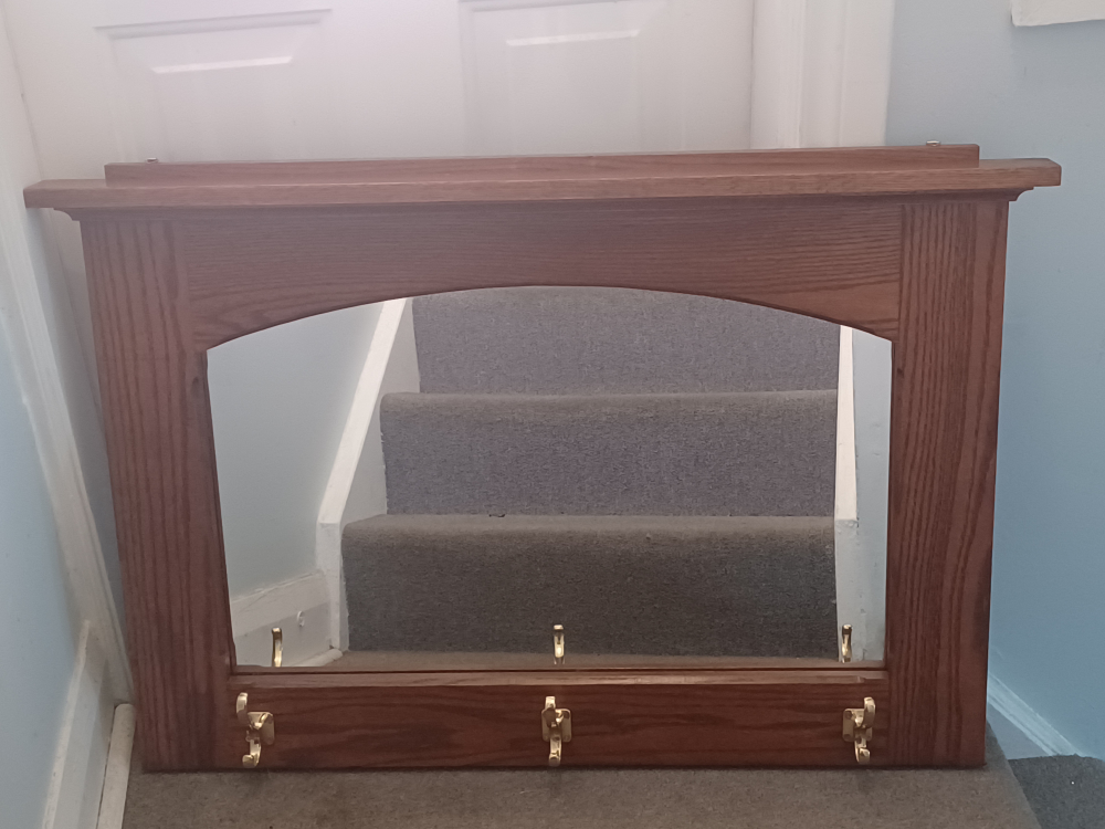 Beautiful Solid Real Wood Entryway Mirror with Coat Hooks