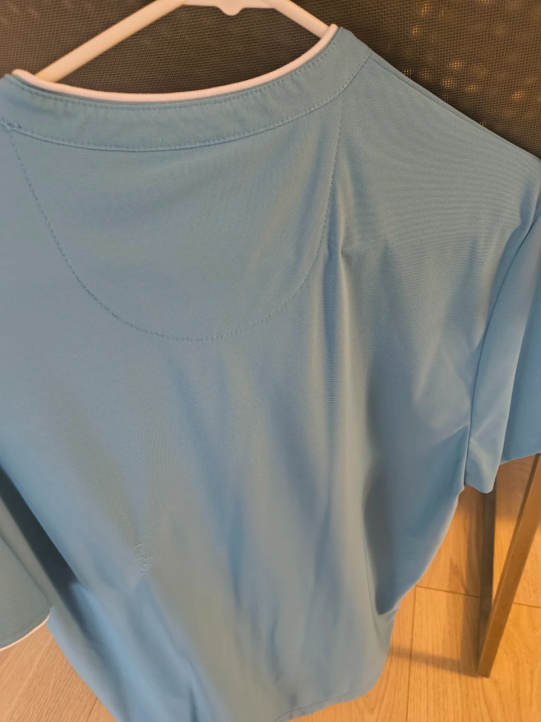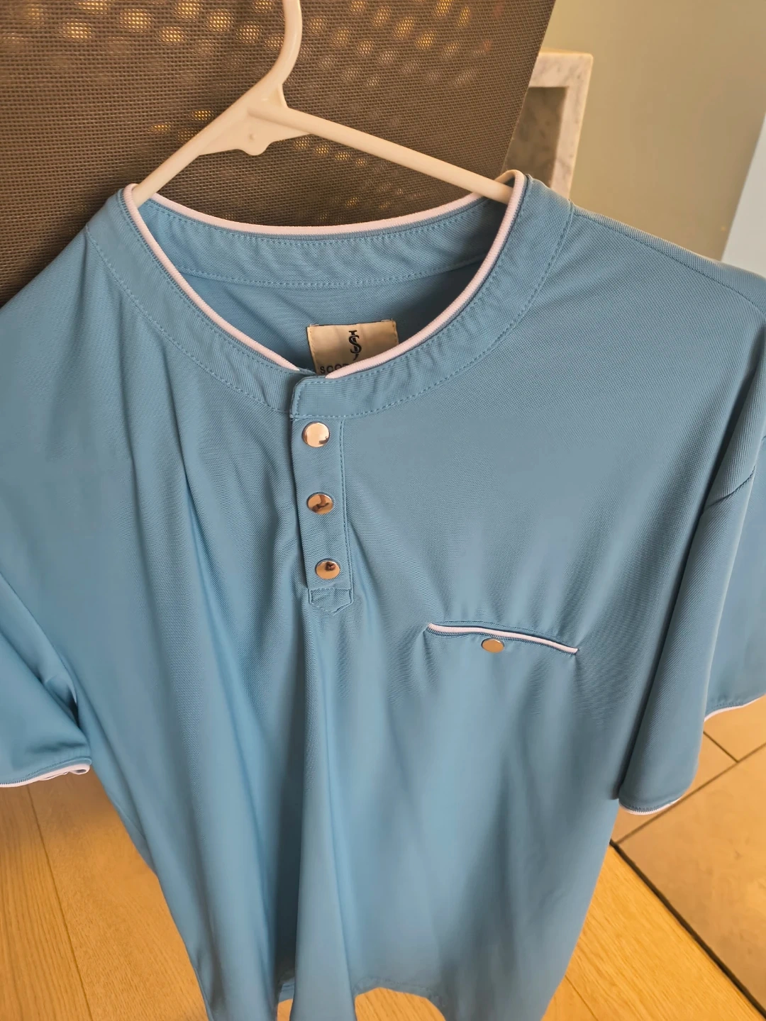Light Blue Henley Style Shirt with White Trim