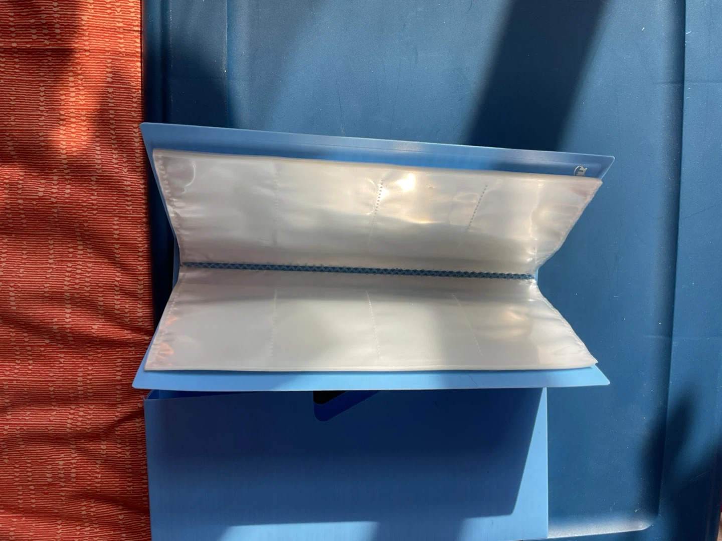 This Trio business card holder stores up to 480 cards. It's made of durable plastic with clear sleeves. Keep your business cards organized and protected!
