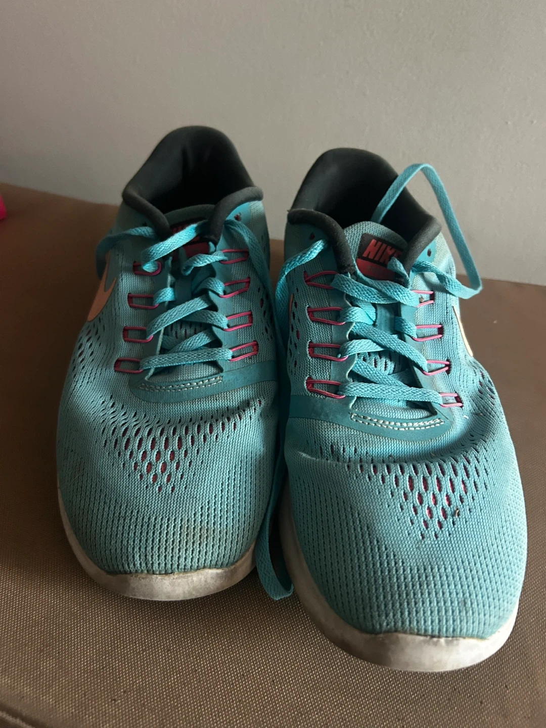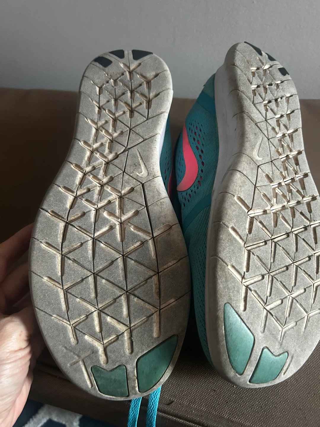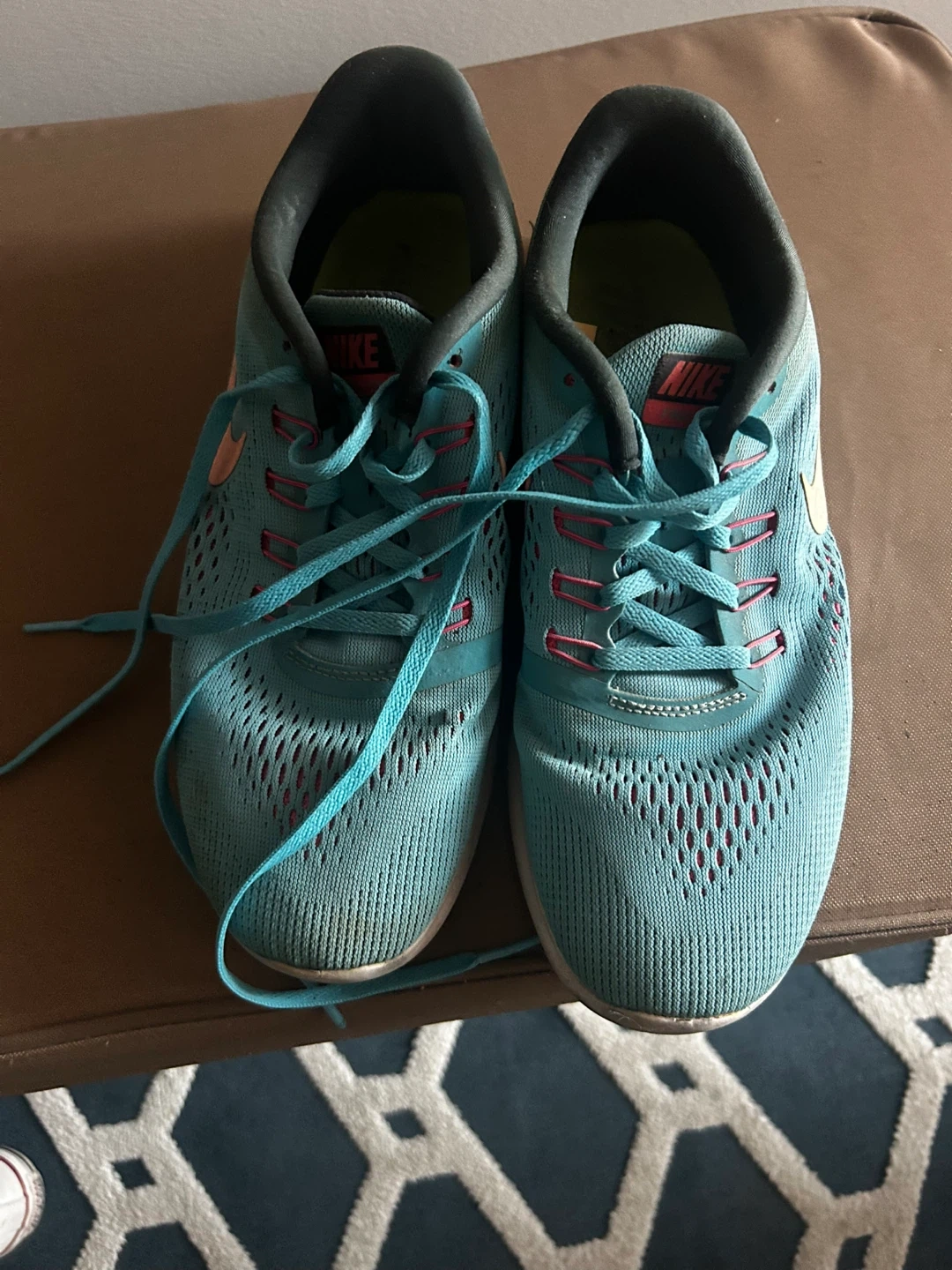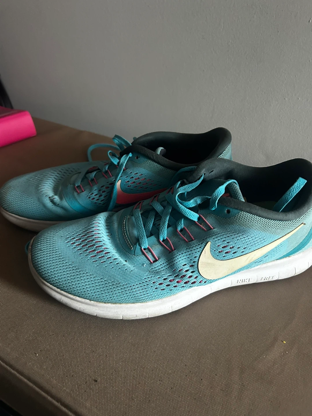 These are blue Nike Free RN running shoes. They have a breathable mesh upper and flexible sole. Perfect for your daily runs!