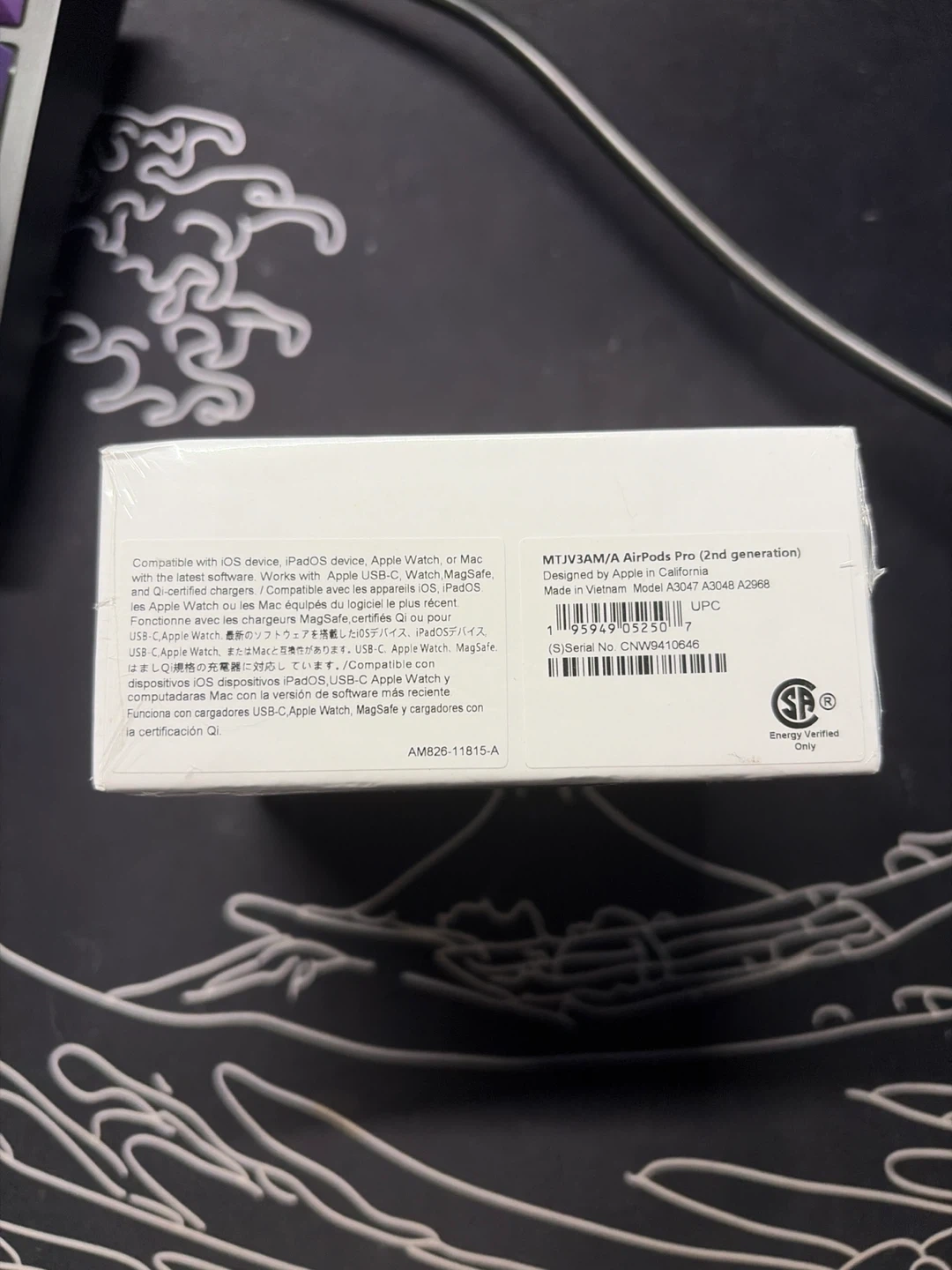 π AirPods Pro (2nd generation) with MagSafe Charging Case (USB-C). Includes original box and charging cable. Energy Verified Only. π