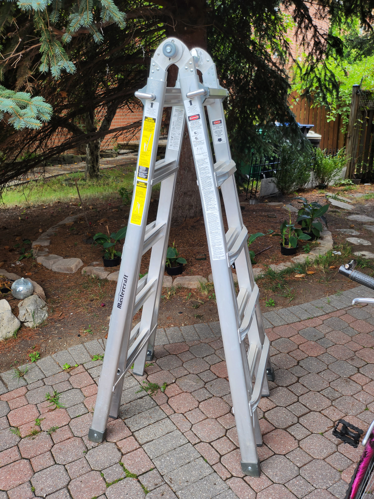 Mastercraft 21ft aluminum folding ladder. Can be used folded or straight. Only used a couple of times and is in good condition.