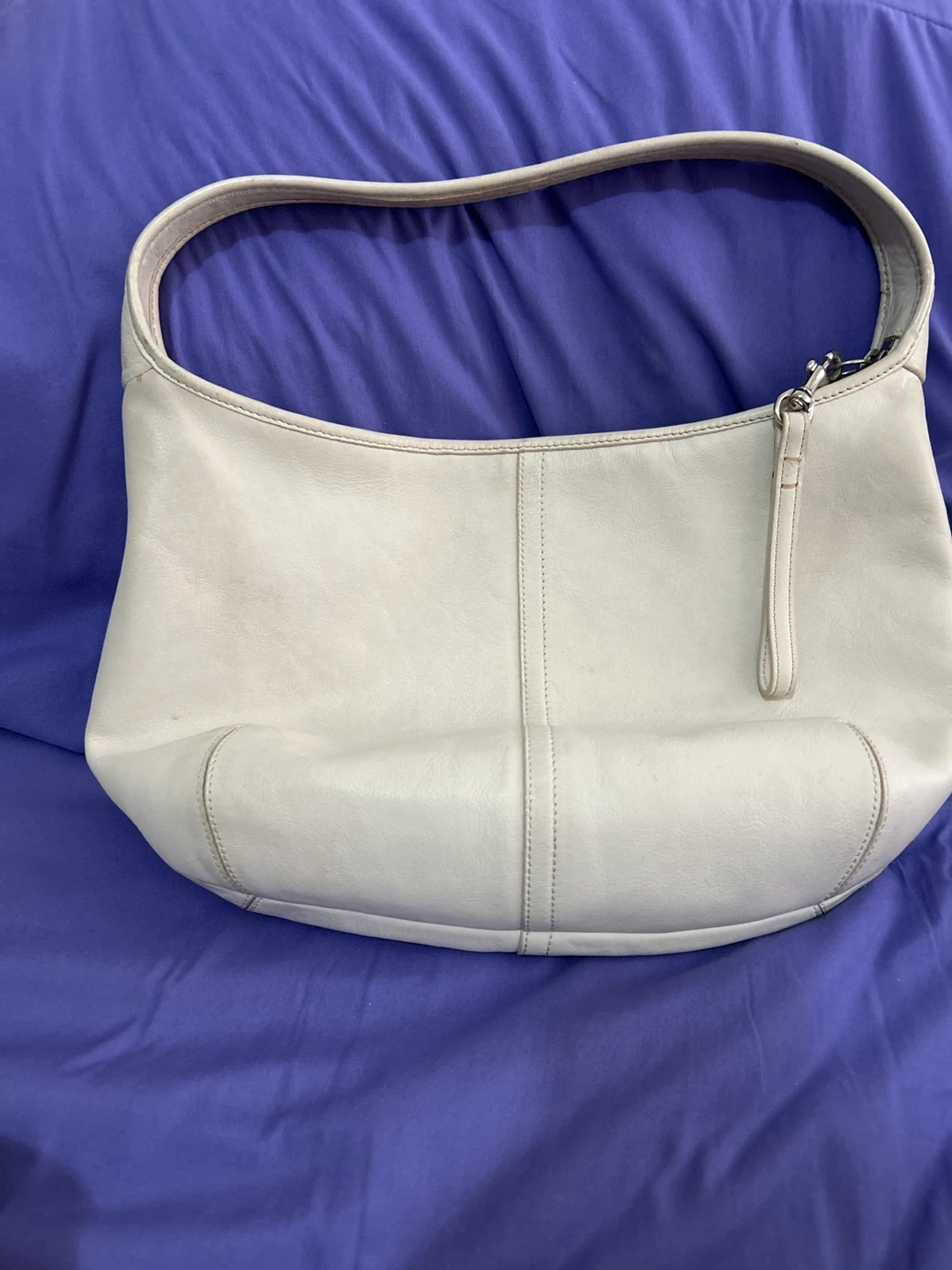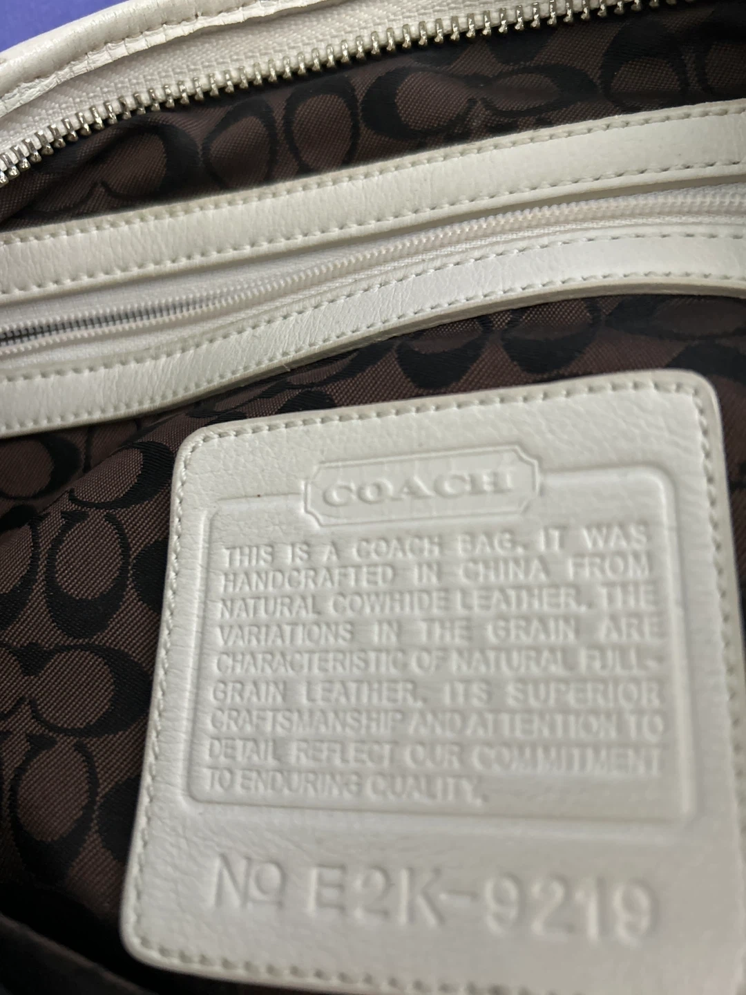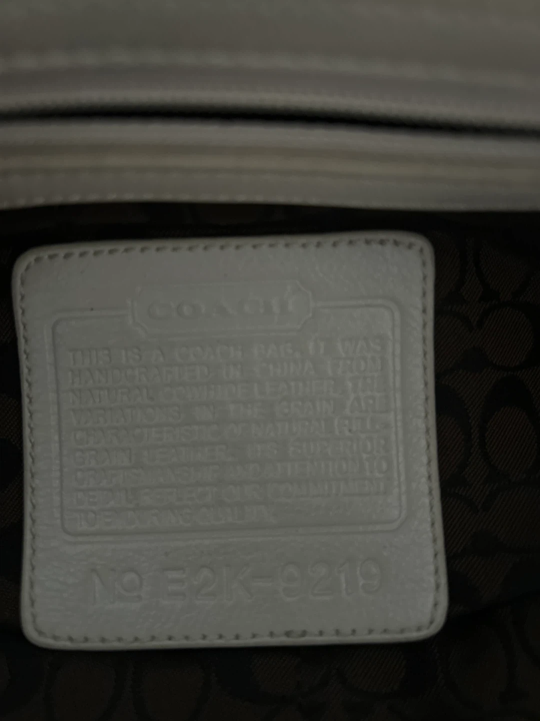 This is a Coach bag handcrafted from natural cowhide leather. It features variations in the grain characteristic of natural full-grain leather. Its superior craftsmanship and attention to detail reflect our commitment to enduring quality.
