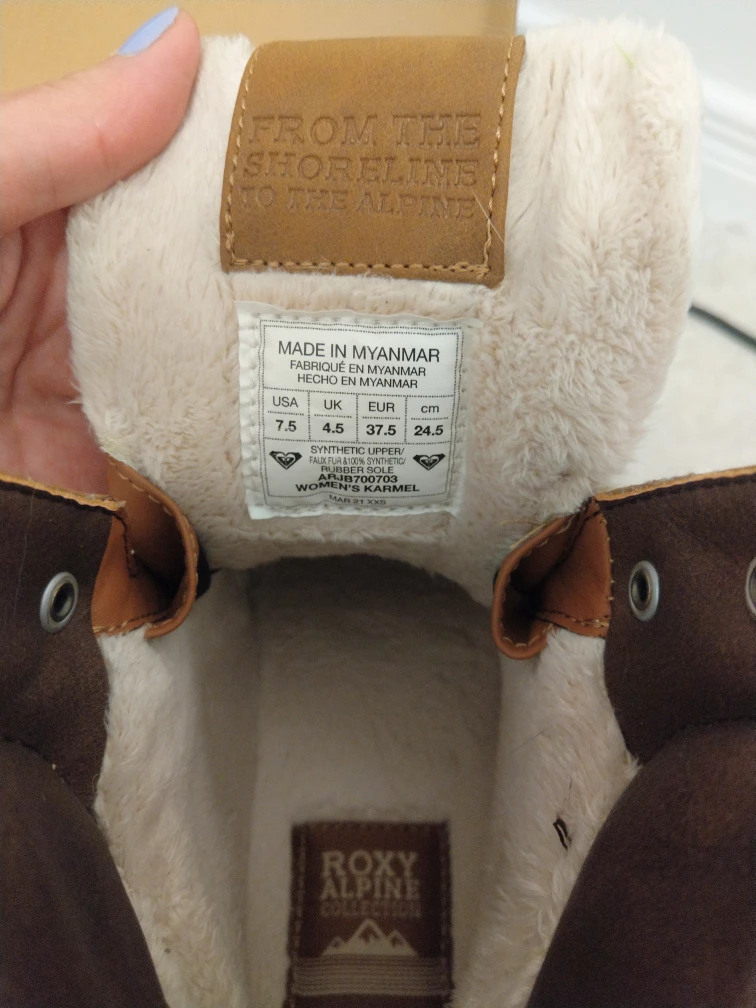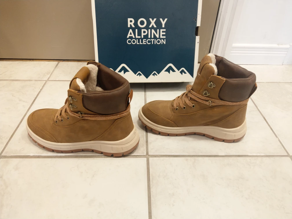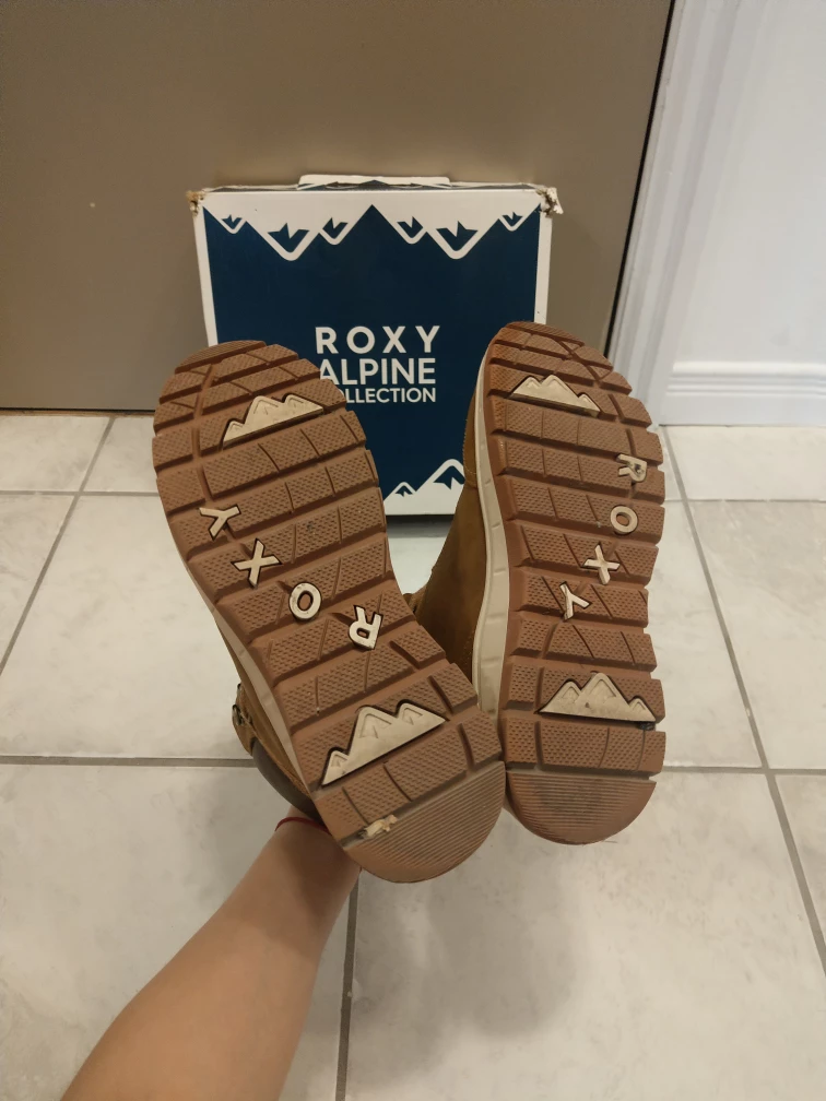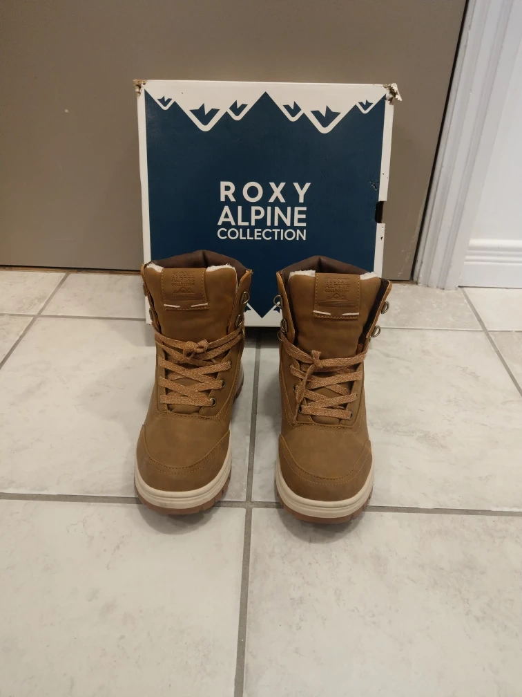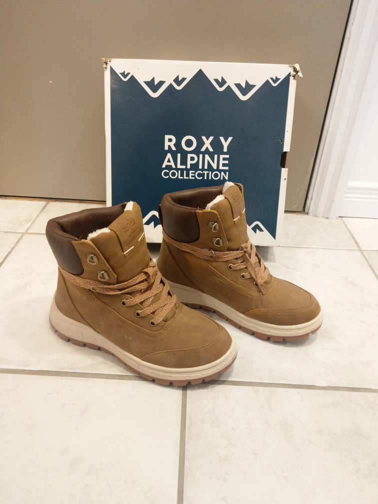 - only worn twice, almost as new - Roxy women's karmel winter boots - vegan-friendly leather upper with a lace-up closure - waterproof rubber cup sole with lug bottom for a no-slip traction grip - faux fur lining, footbed, and 200g/m2 fill thermal breathable insulation, along with a Cold rating of -40°C, ensure maximum warmth