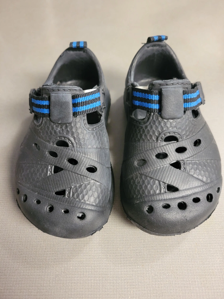 They have only been worn 2-3 times. Children's feet grow soo fast. They are in great shape! They are from Children's Place.
