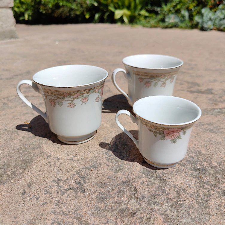 175The gold is worn on some of the teacups, minor scratches, and no chips. There are two different sizes in this lot.