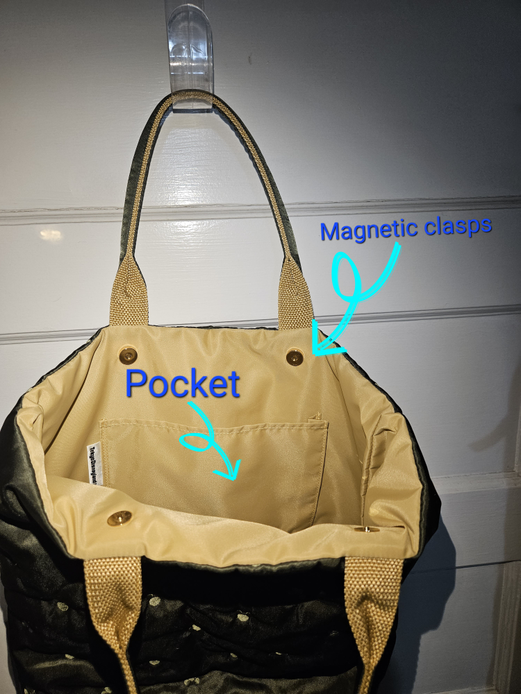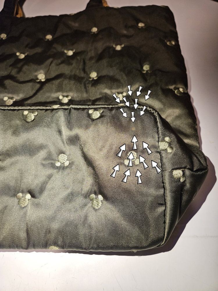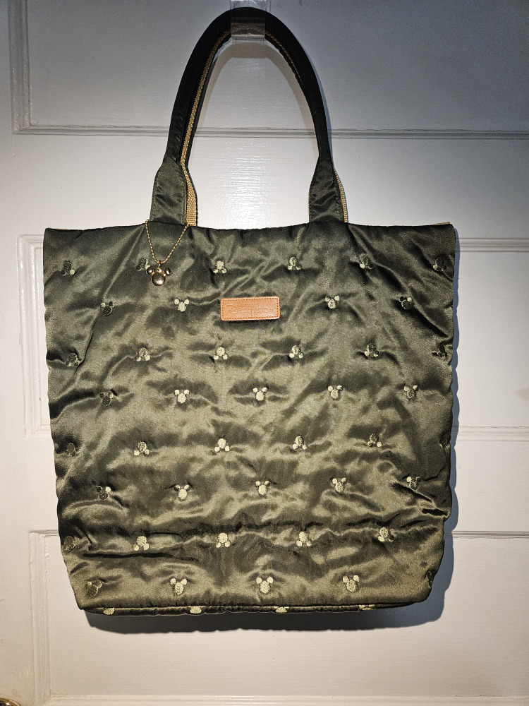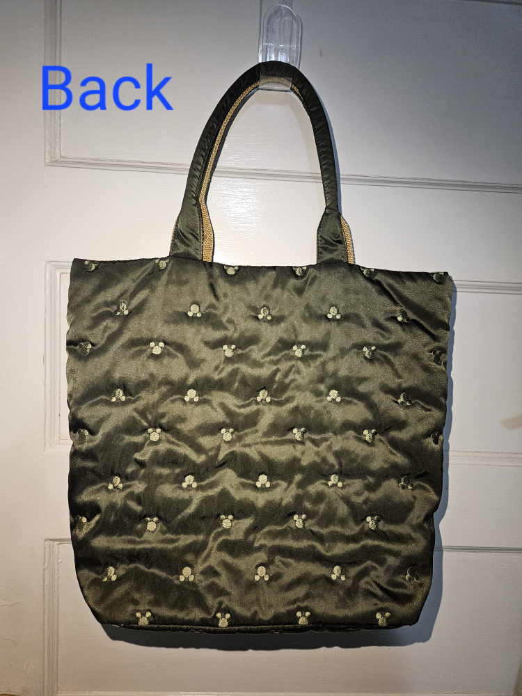 Beautiful satin army green tote with cute lighter green Mickey heads