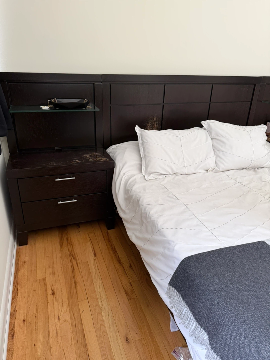 Dark Brown Queen Bed Frame with Integrated Nightstands