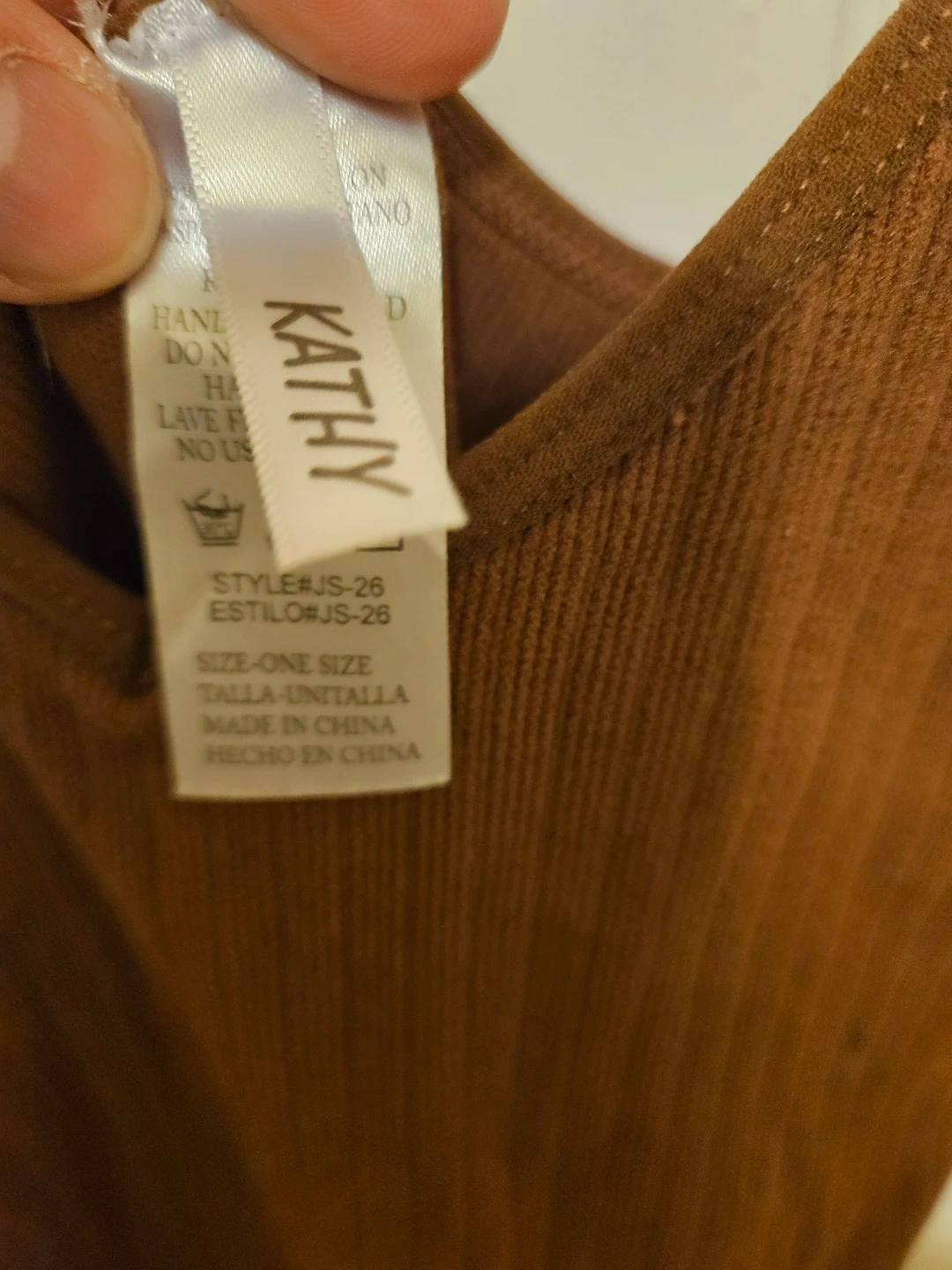 Selling a Kathy jumpsuit in one size. It's made of 92% nylon and 8% spandex. The style number is JS-26. It's in good condition and ready for a new owner!