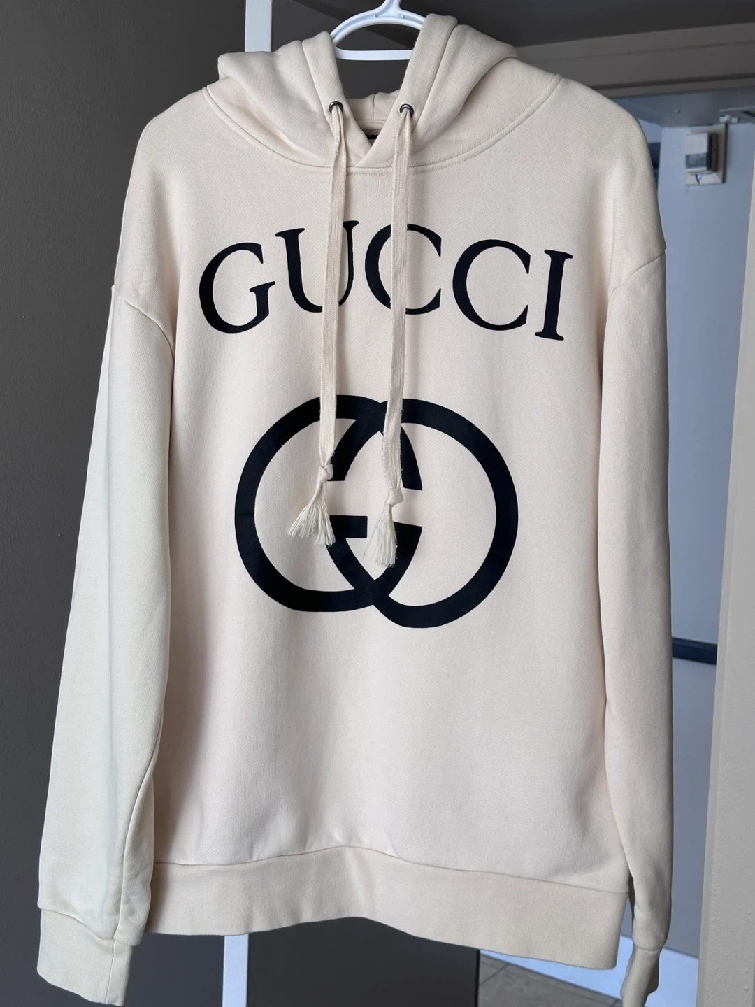 Selling a Gucci hoodie. It features the iconic Gucci logo on the front. It's a stylish and comfortable piece to add to your wardrobe! L-XL