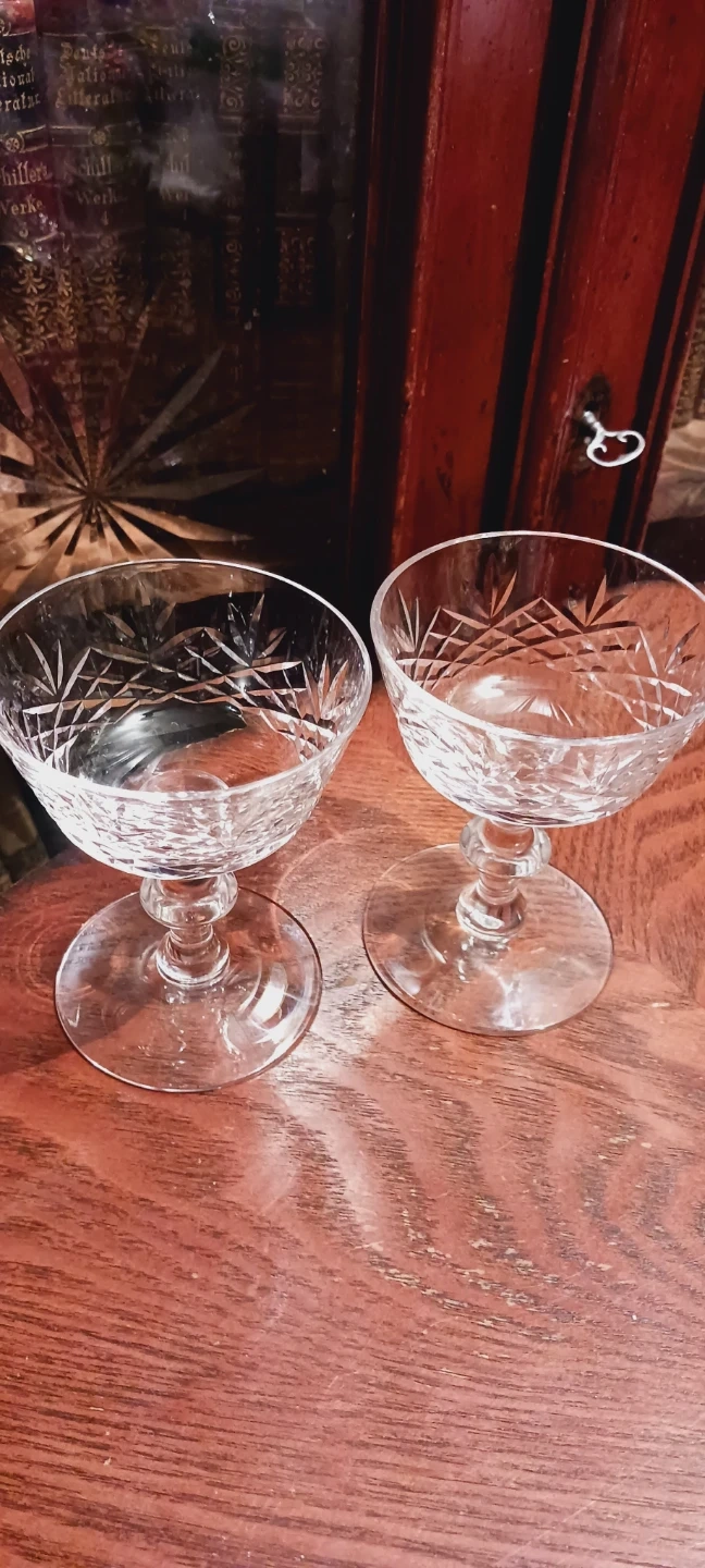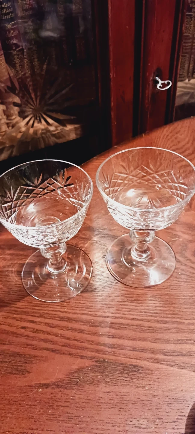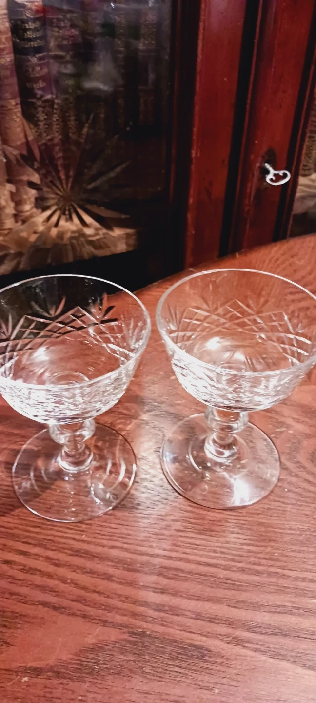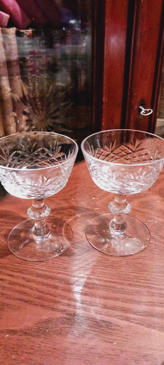 Beautiful set of two crystal coupe glasses.Each glass features intricate cut glass detailing. Perfect for serving champagne or cocktails! 5"×4". Excellent Mint condition. ALL MY PRICES ARE NEGOTIABLE !!