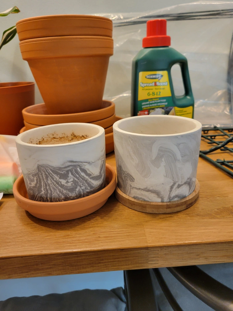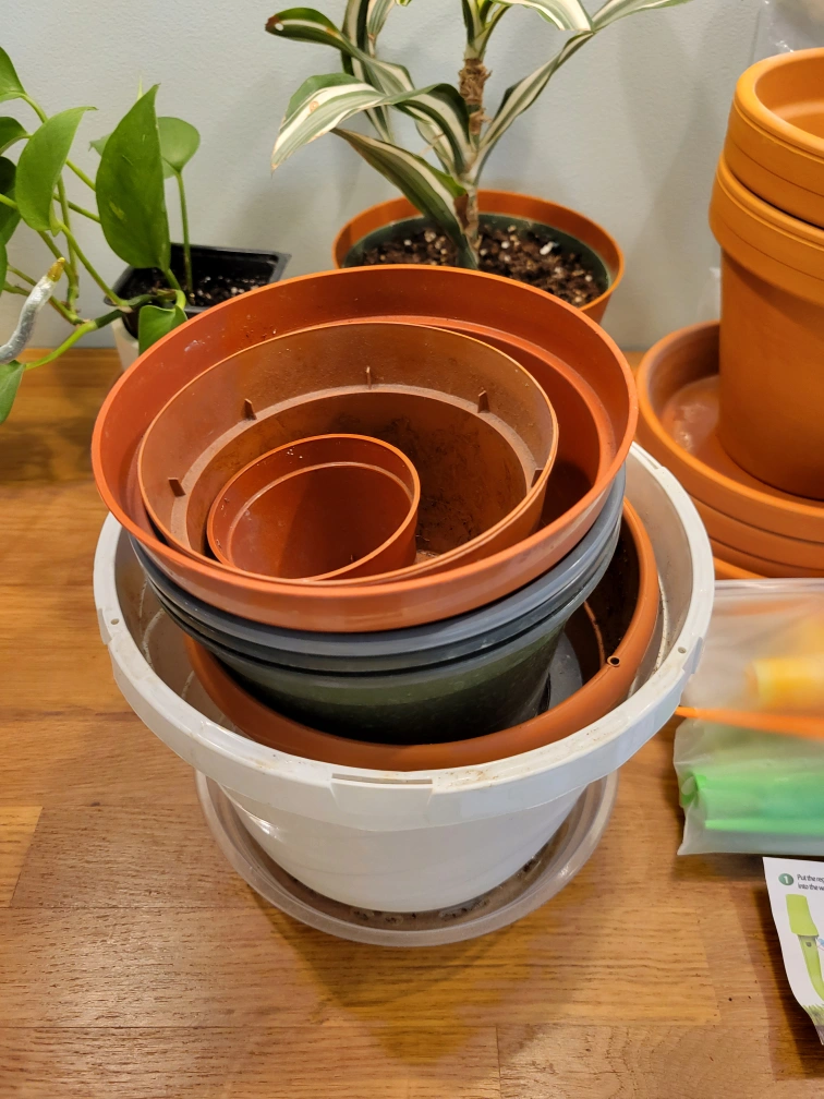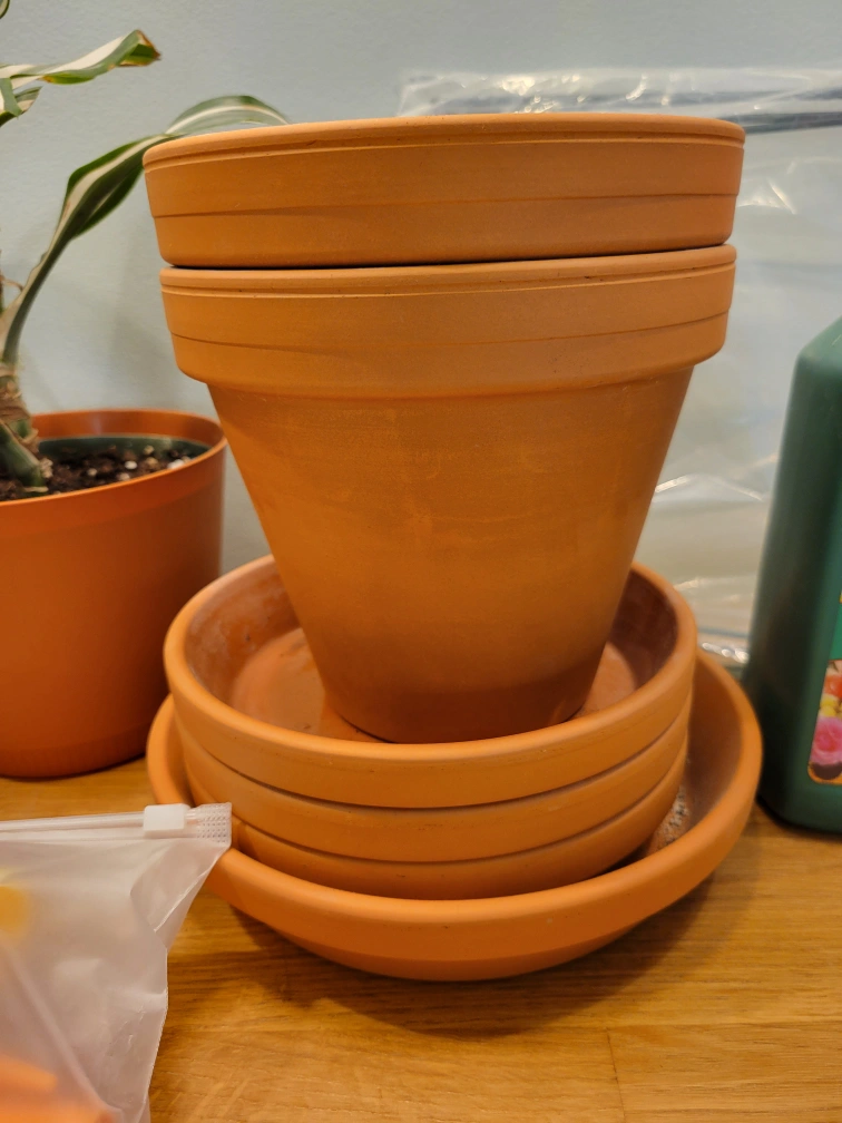 Plant pots, nursery pots, and saucers: $5 for all (or as many as you want)