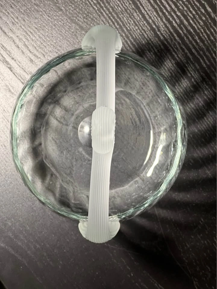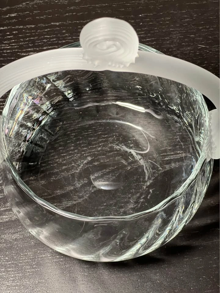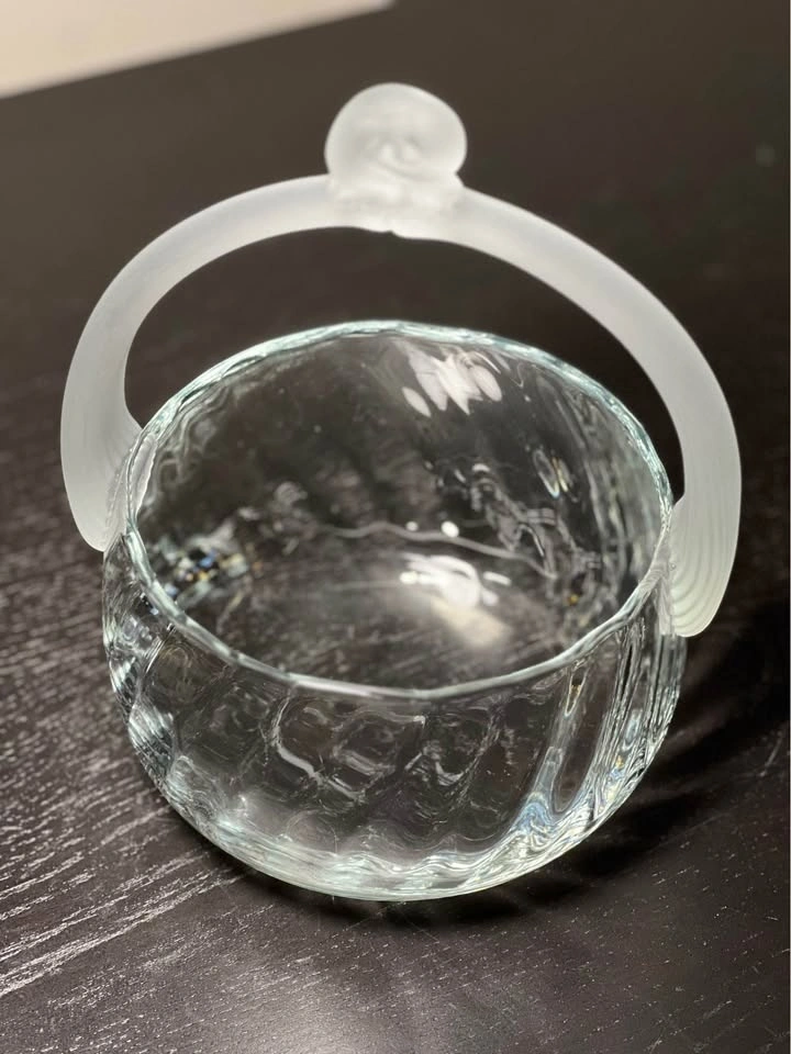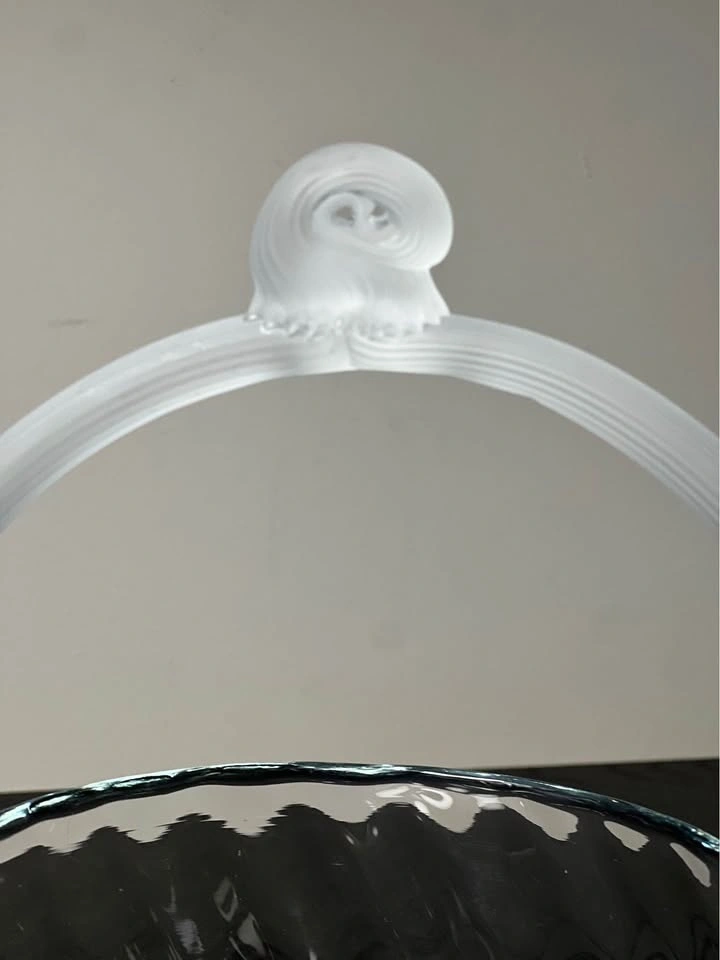 Lalique Style Art Deco Glass Basket w/Reeded Frosted Handle
