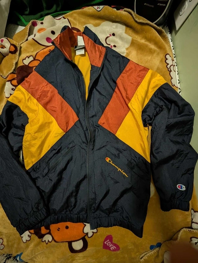 Elevate your athletic style with this vibrant Champion jacket, featuring a striking colour-block design in navy, yellow, and orange. This jacket is in good used condition, perfect for adding a pop of colour to your workout gear or casual wear. Key Features: - Brand: Champion - Design: Colour-block (navy, yellow, orange) - Condition: Good used - Style: Full-zip windbreaker If this ad is still up, the jacket is still available! Cash accepted.