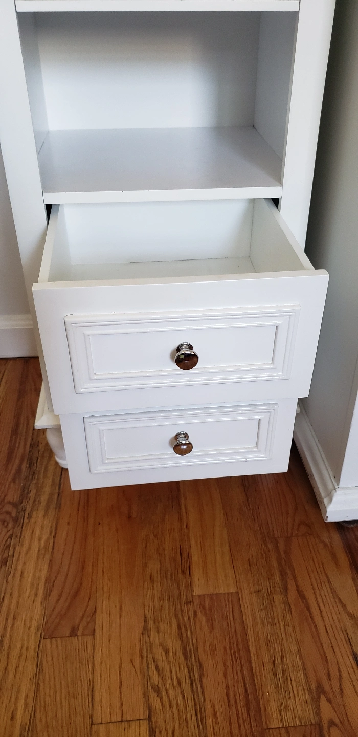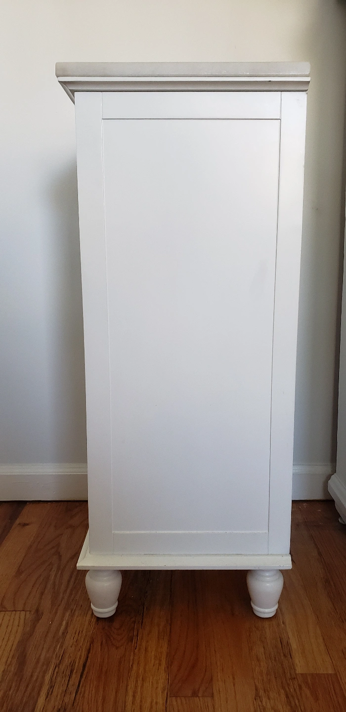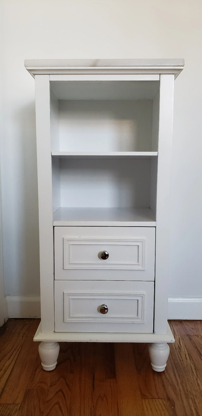 Marble Top Bathroom Cabinet 2 Drawer In good condition with a couple of minor wear. One of the corners is slightly chipped. size 32H x 15D x 13L Asking for $130 Pick up ONLY. It is somewhat of a heavy piece you will need transportation for pick up. CASH OR VENMO ONLY