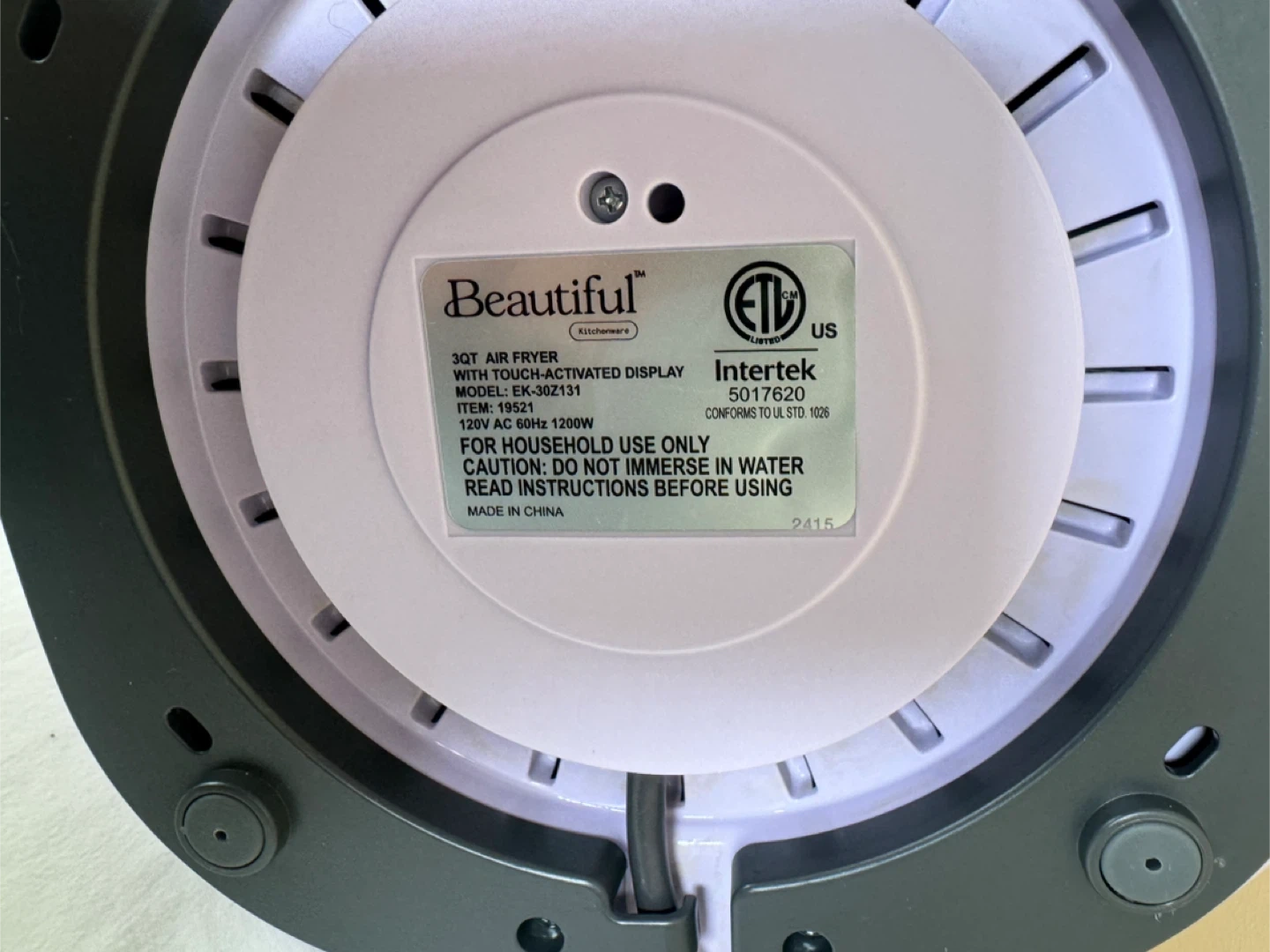 This Beautiful 3QT air fryer features a touch-activated display for easy use. It's model EK-302131 and operates on 120V AC, 60Hz, 1200W. Air frying, roasting, reheating, and baking are all possible with this appliance!. Solo se usó dos veces. Casi nueva