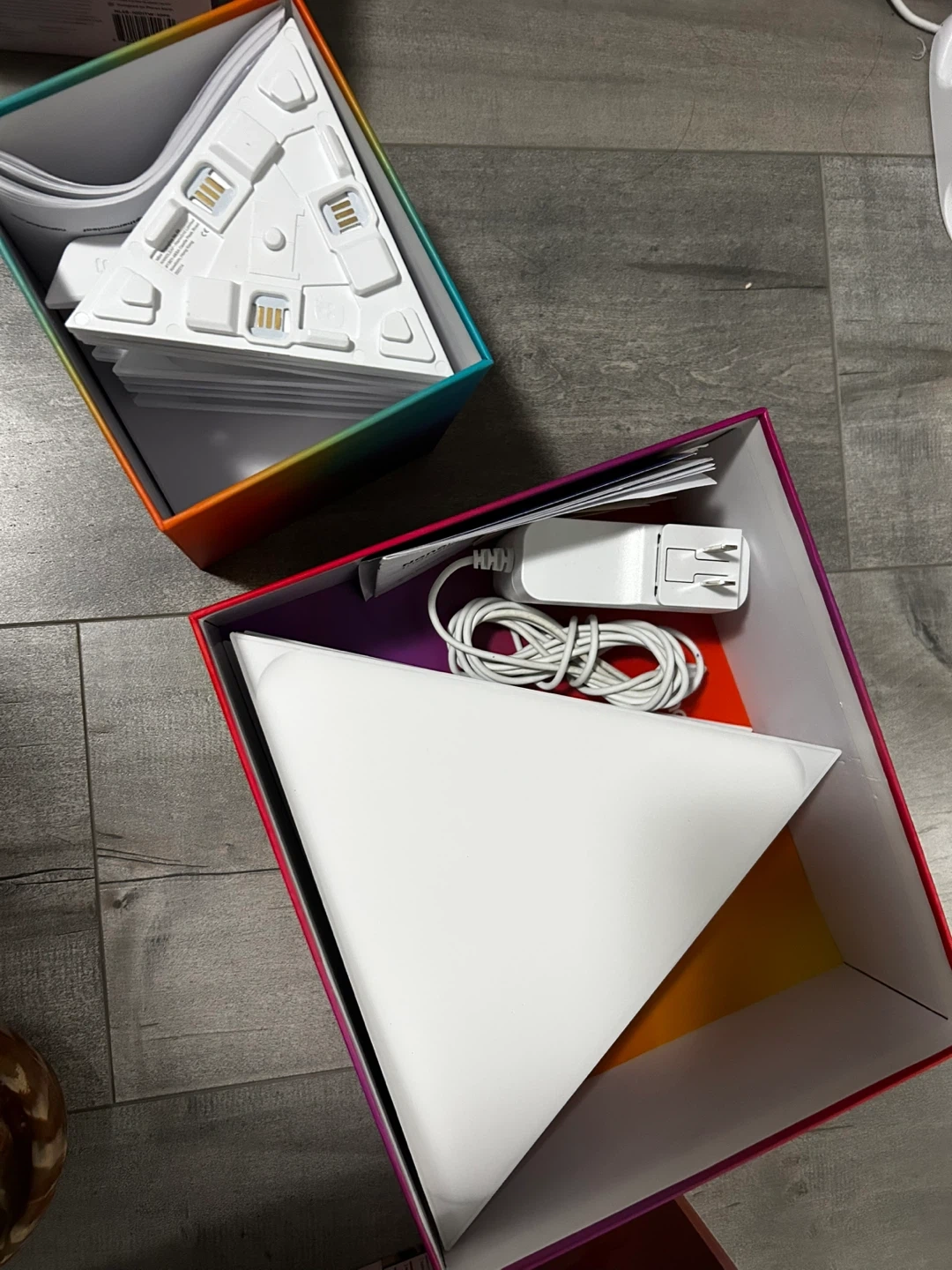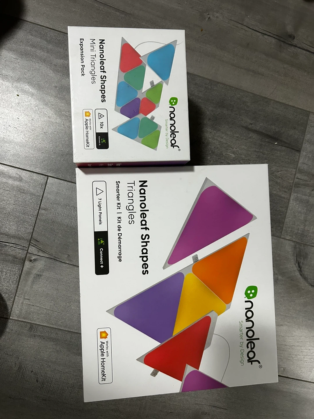 Includes Nanoleaf Shapes Triangles Smarter Kit with 7 light panels and an Expansion Pack with Mini Triangles. Power adapter and connectors are included. Smarter by design!