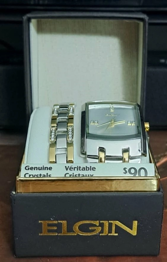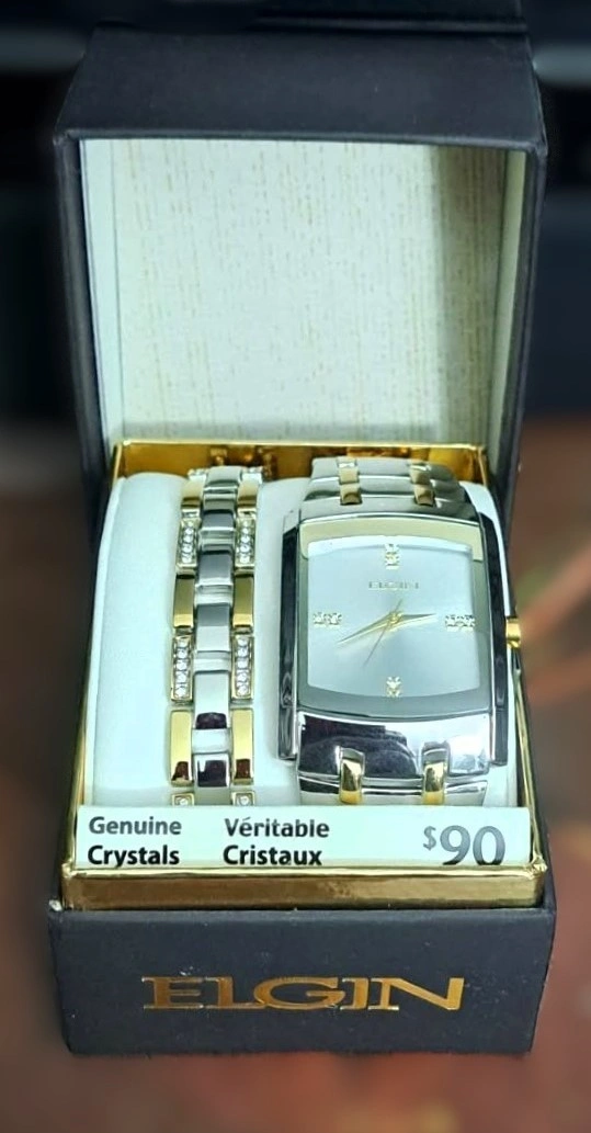 BRAND NEW Men's Elgin Watch & Bracelet Set - Genuine Crystals🏆