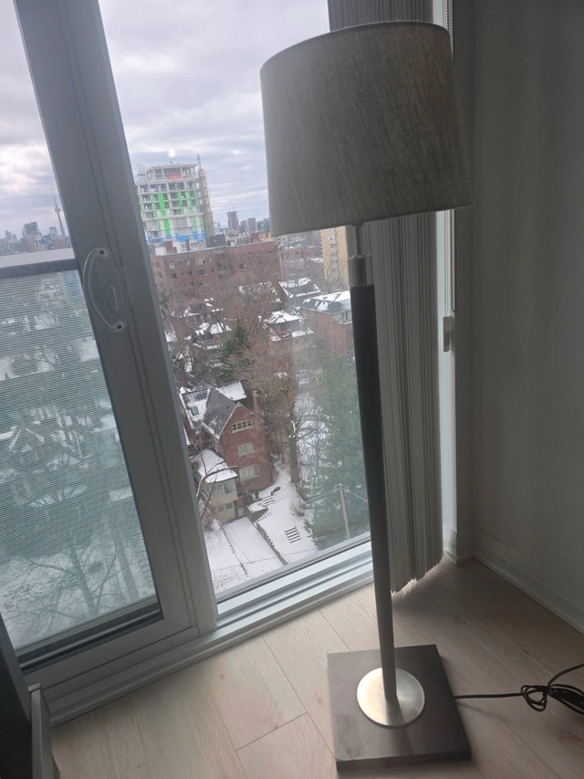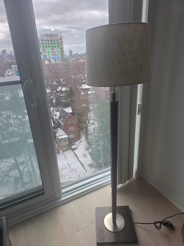 Specialties 60-inch Modern Floor Lamp in black and nickel finish with a grey fabric shade. Removable shade/ can be changed. Asking $75. Used - Good condition. For Sale By: Owner.
