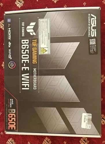 This is a new Asus TUF Gaming B650E-E WiFi AM5 ATX AMD DDR5 motherboard, perfect for high-performance gaming setups. It features 4 DDR5 slots supporting up to 256GB of RAM, an AMD B650 chipset, WiFi 6E, LAN, M.2 NVMe Gen 5.0, and SATA III storage options. It's still sealed in the original box and was purchased less than two weeks ago from Micro Center. No returns.