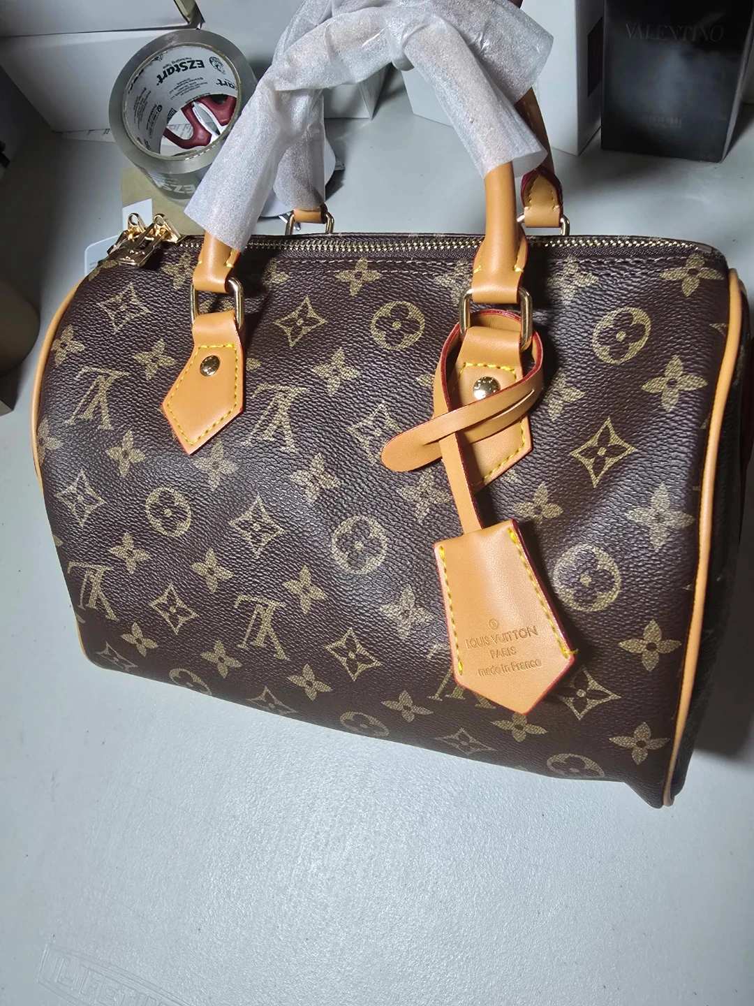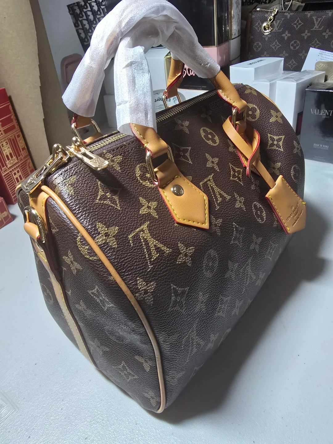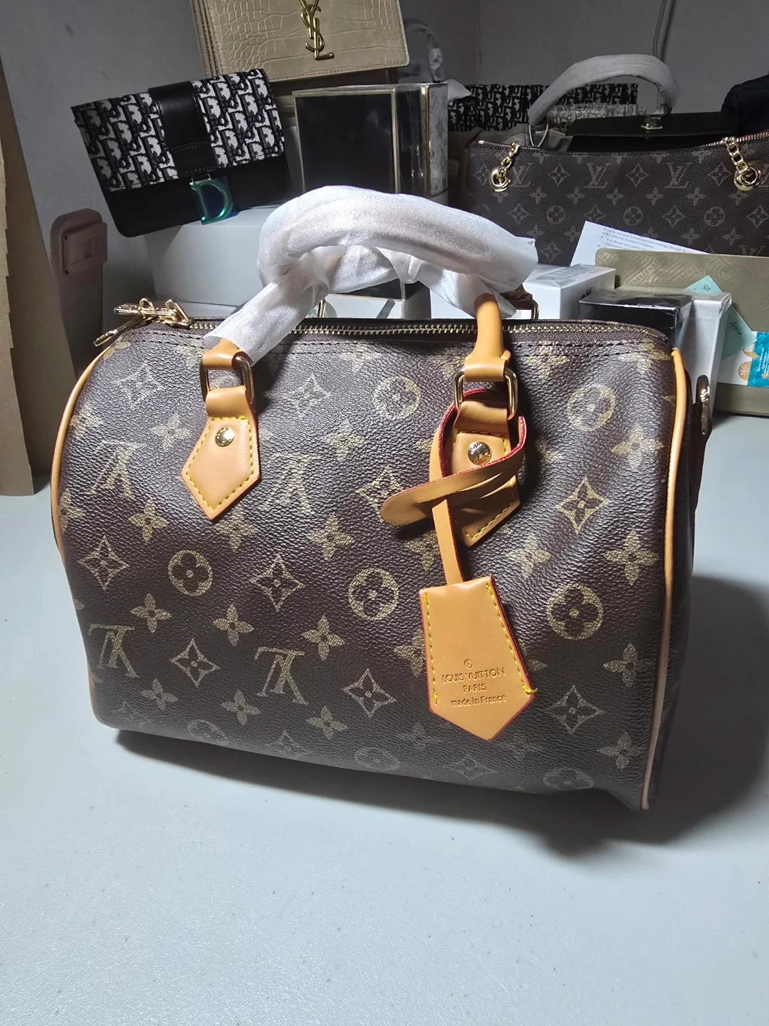 This is a beautiful Louis Vuitton Speedy 25 handbag. It's in great condition and features the classic LV monogram. A timeless piece to add to your collection!