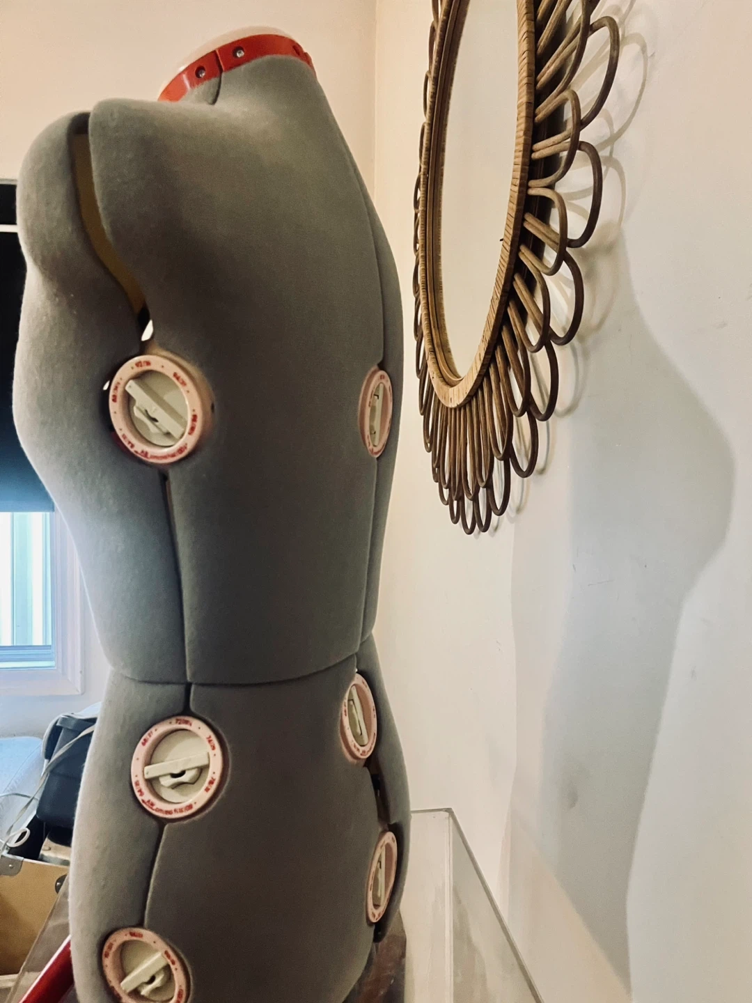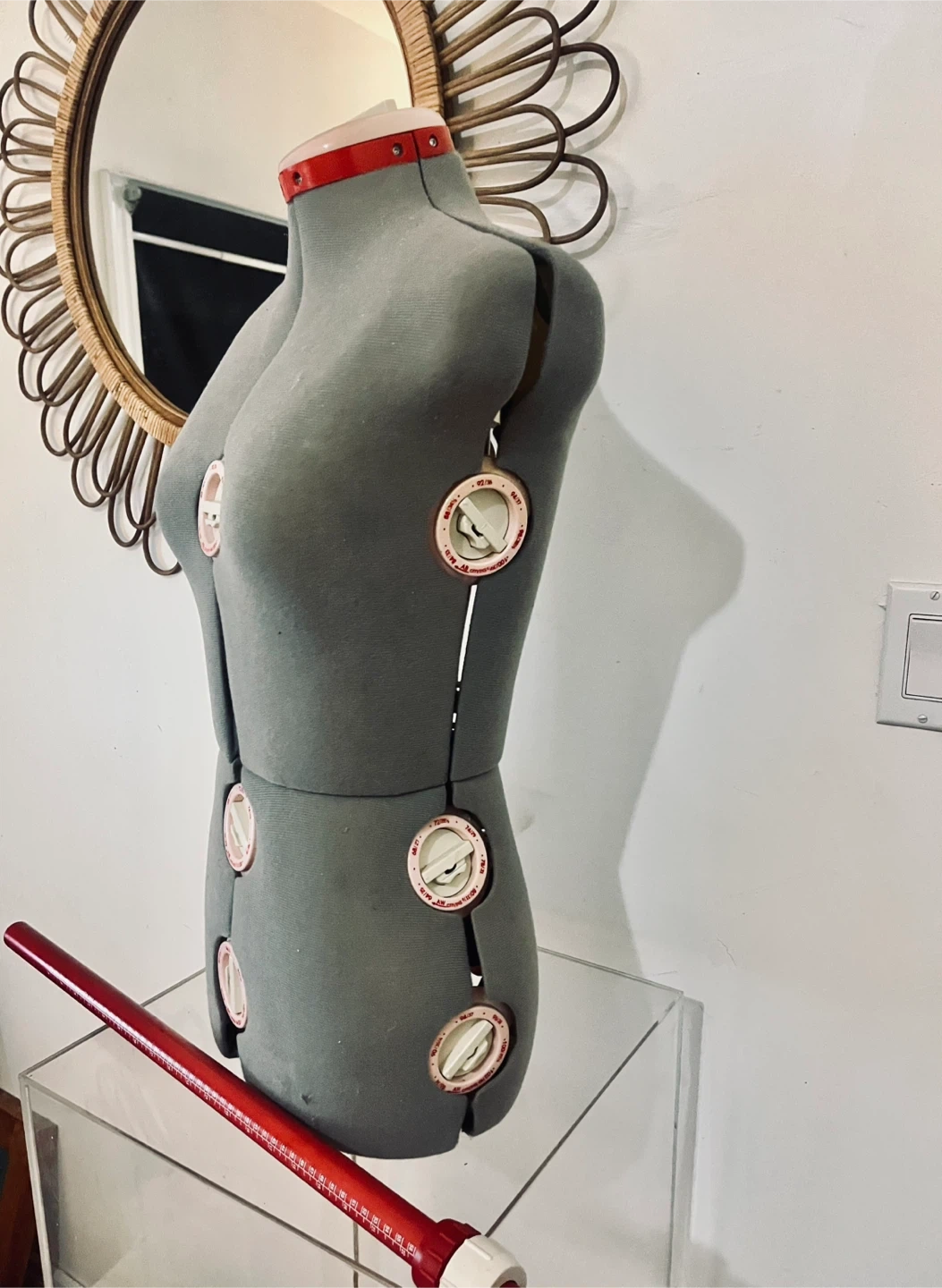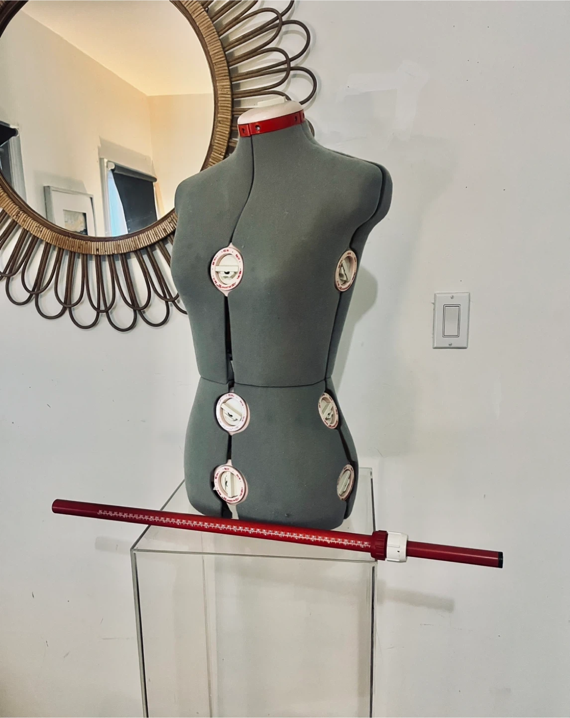 Selling an adjustable dress form mannequin. It has adjustable dials for different sizes. Great for sewing and design projects!