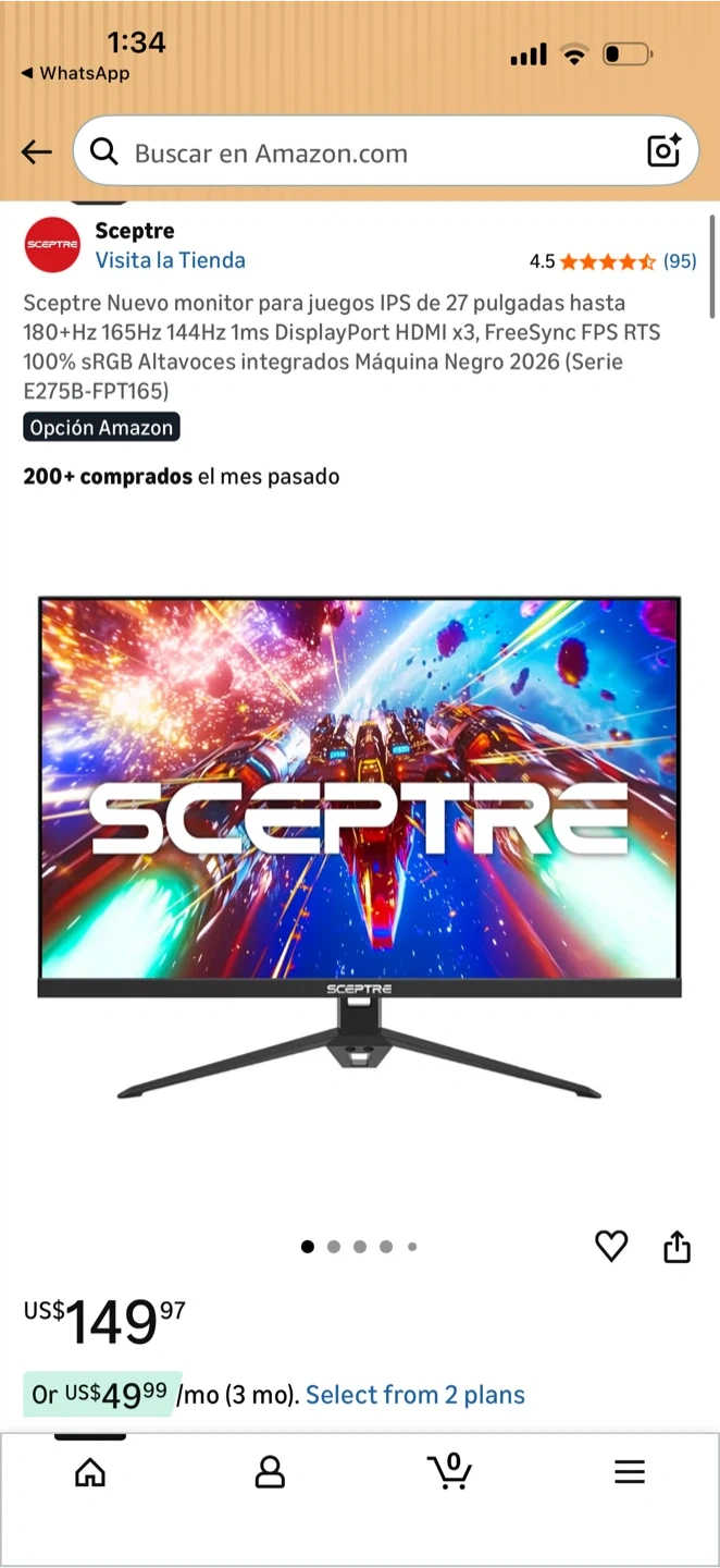Sceptre 27-inch Edgeless gaming monitor. Full HD 1920 x 1080 resolution. 165Hz refresh rate and 1ms response time. Includes original box.