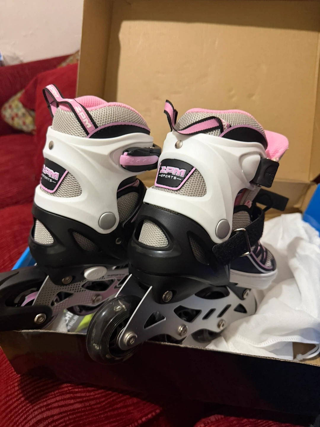 These ZPM Sports rollerblades are adjustable to fit growing feet. They come in a black, white, and pink colorway. Great for outdoor fun! Size 10C -13C