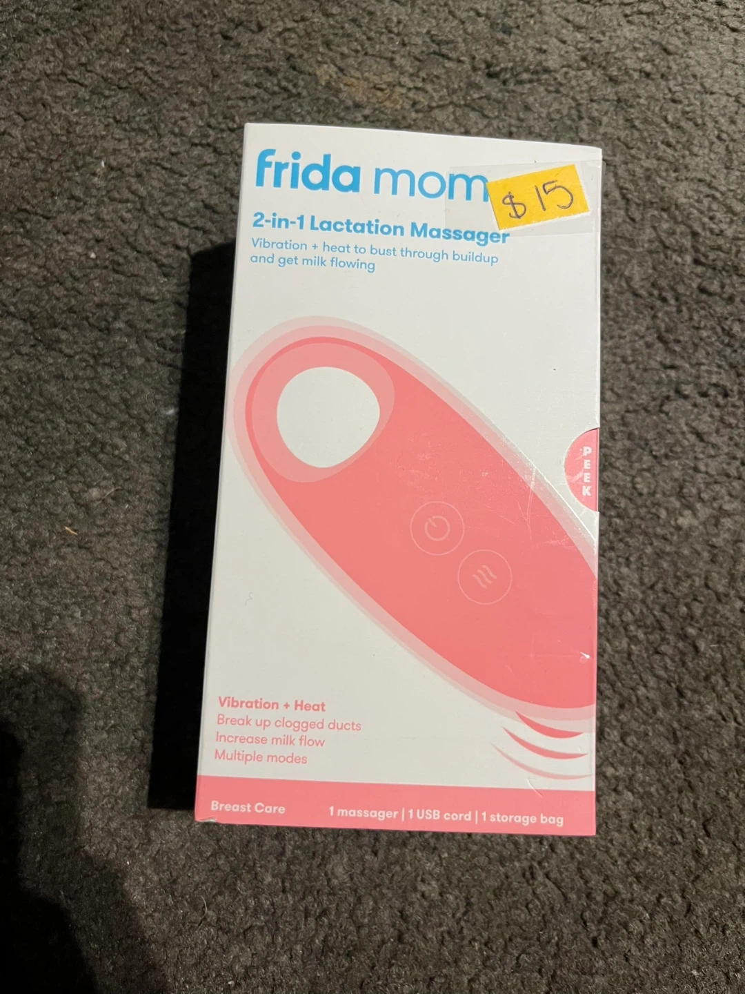 Selling a Frida Mom 2-in-1 Lactation Massager! It features vibration and heat to help with milk flow. It also comes with a USB cord and a storage bag