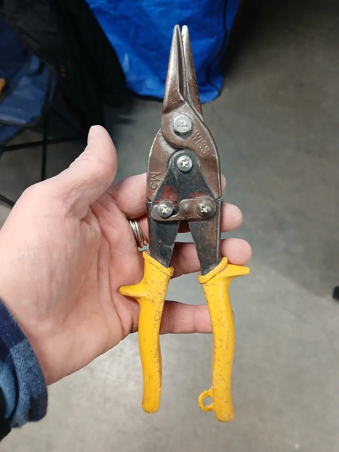 These Wiss M5R aviation snips are designed for cutting sheet metal. They feature yellow handles for a comfortable grip. Made in the USA.