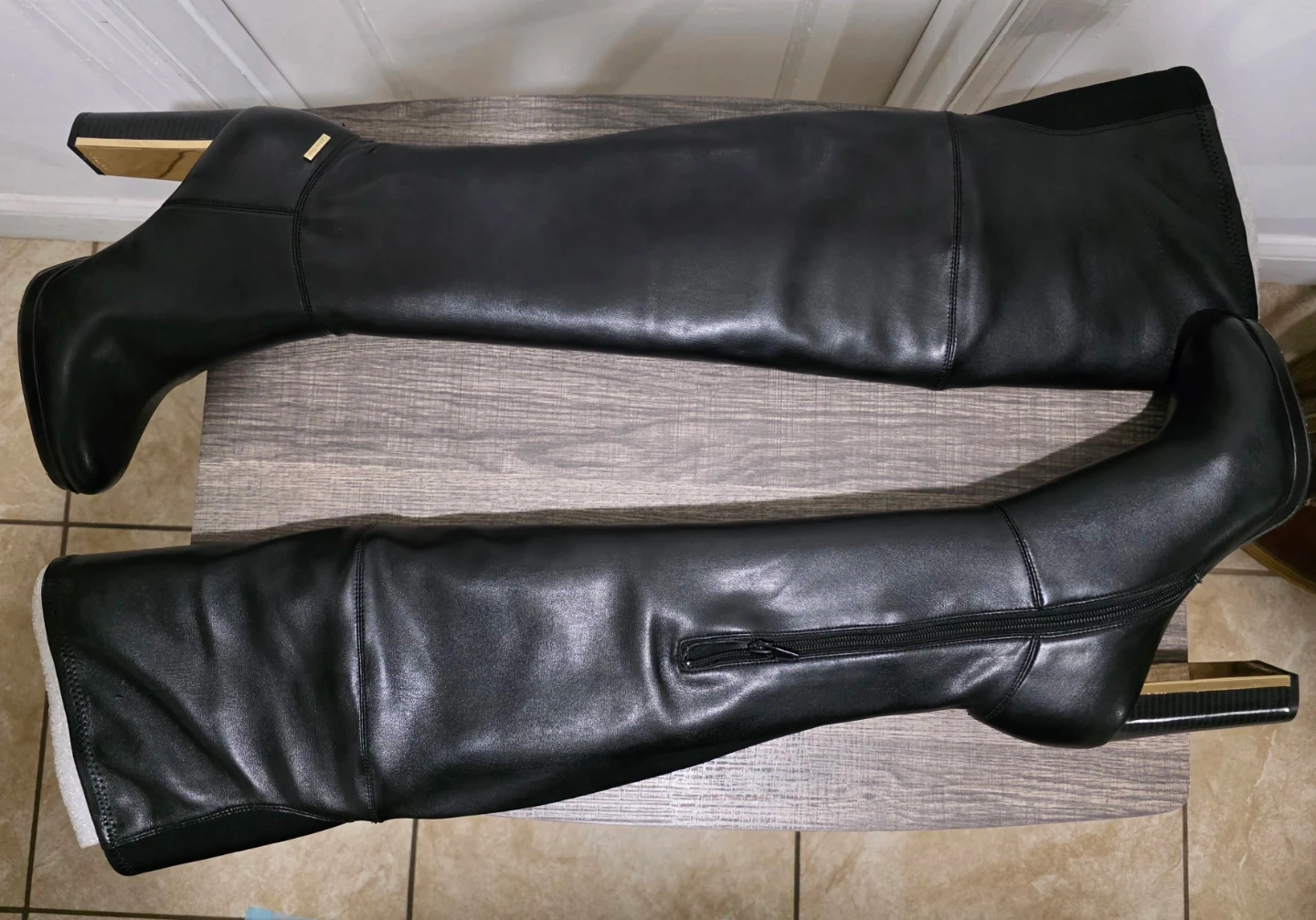 Calvin Klein Black Leather Over-the-Knee Boots