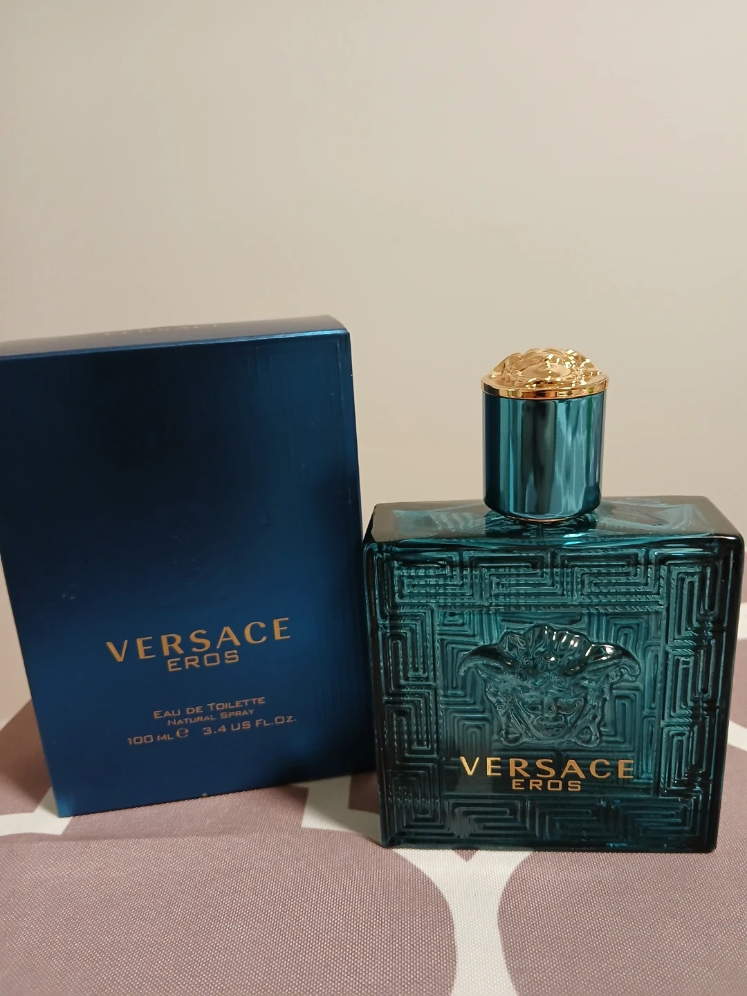 Versace Eros Eau de Toilette for men. Comes in a 100ml bottle. This fragrance has a fresh, woody, and oriental scent. Includes original box.